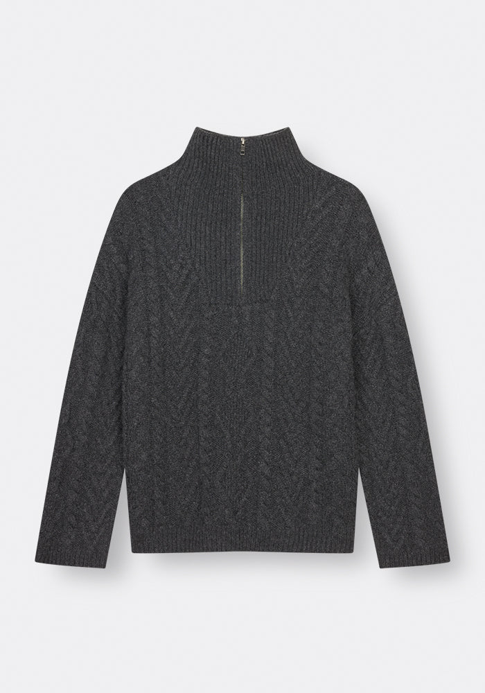 The latest iteration of knitwear, our Cable Knit explores heritage design details through intricate braid detailing. The relaxed silhouette is hand crafted with royal cashmere and finished with a quarter zip.