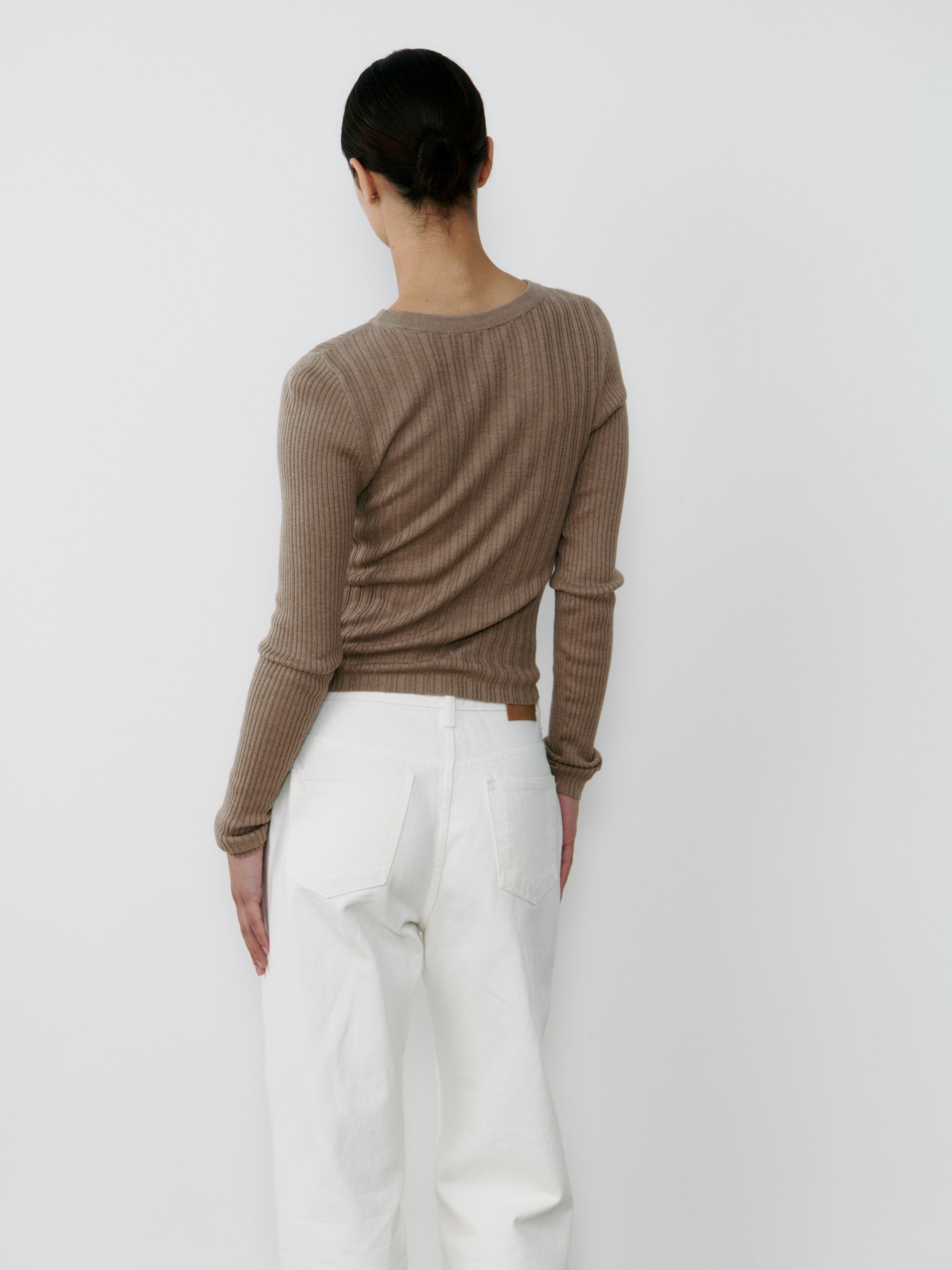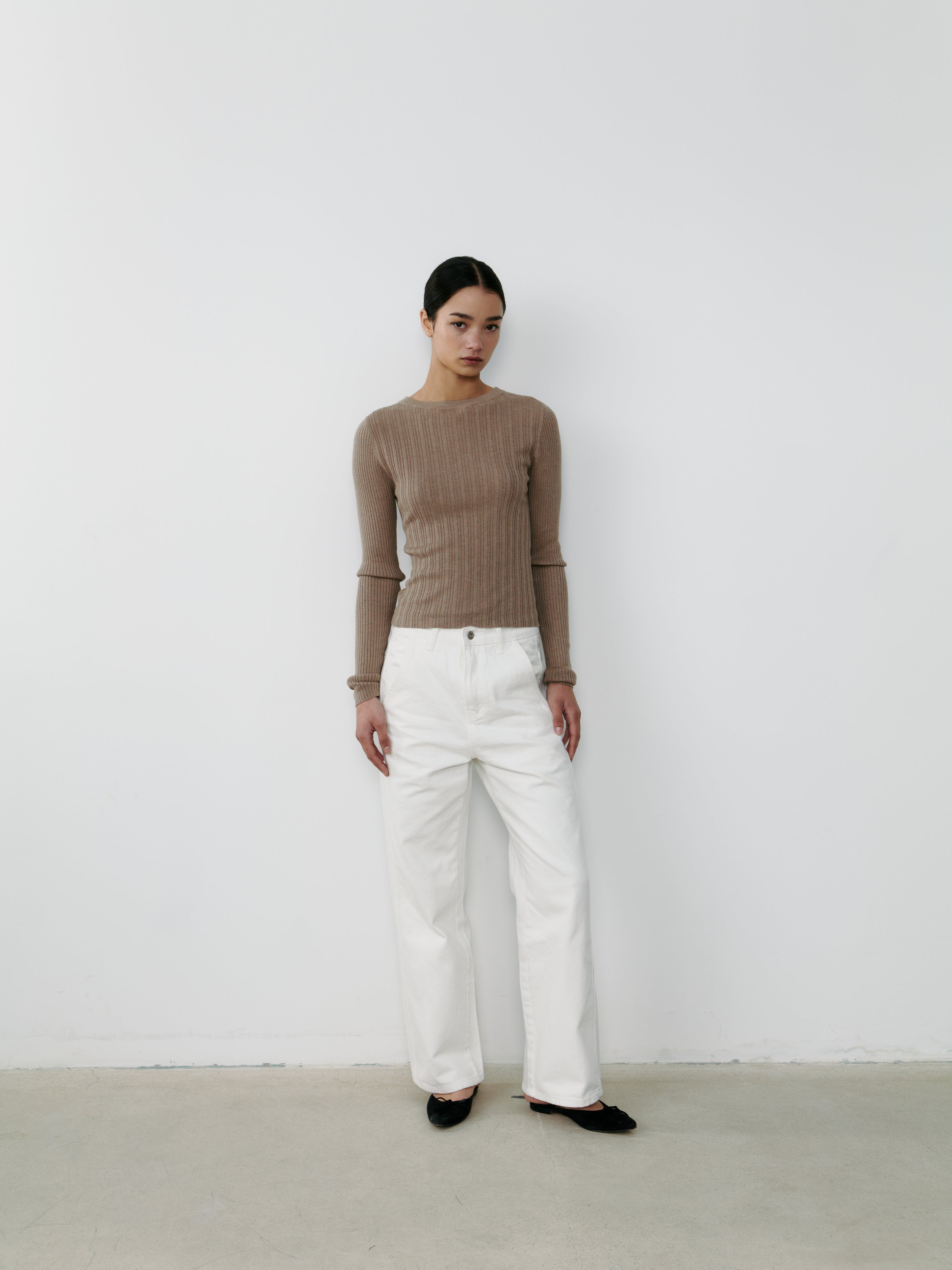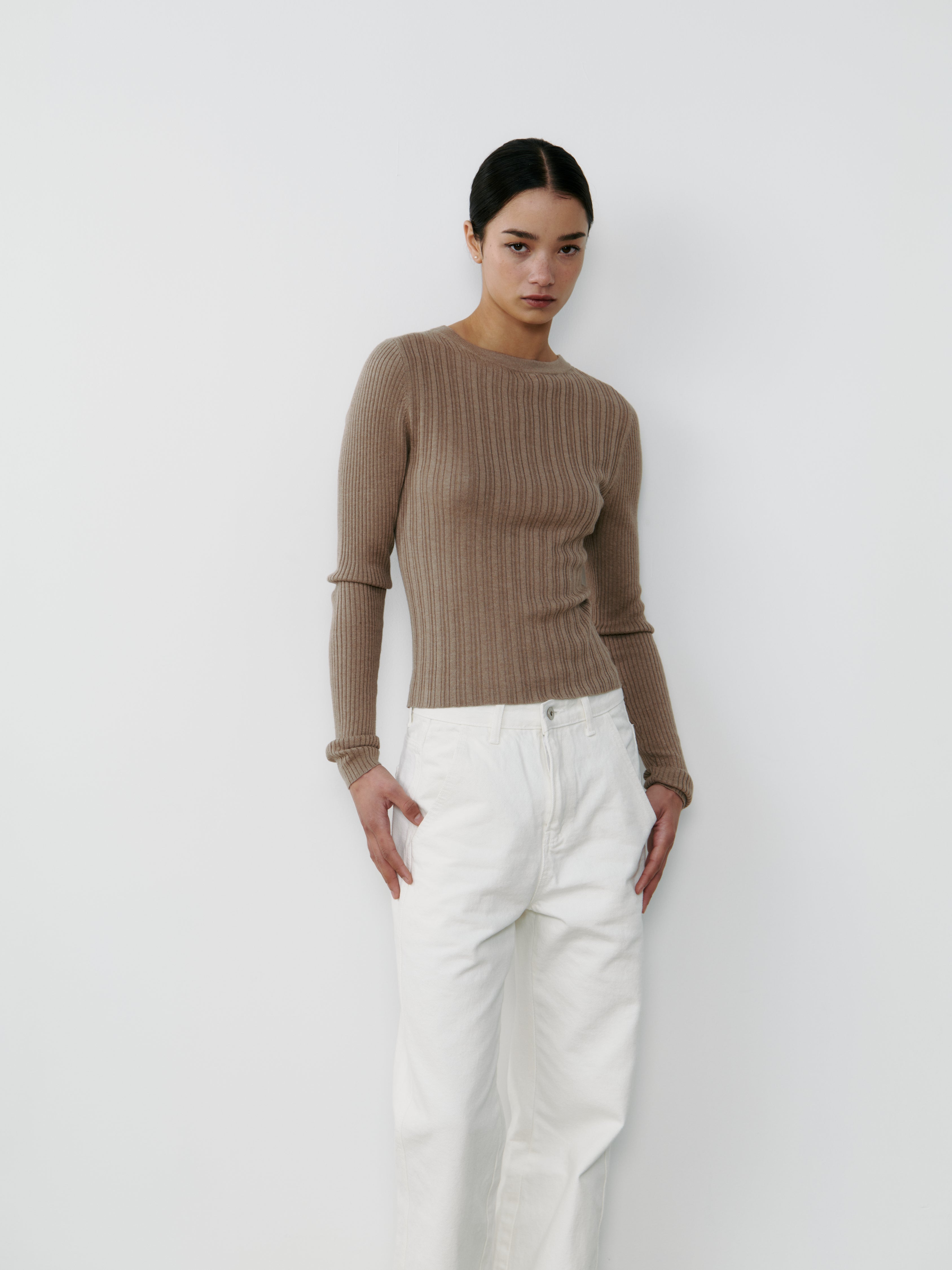 The perfect silk essentials you'll layer all year round. Created in our ethically certified factories with our signature silk cashmere blend. An elegant long sleeve boat neck top with a ribbed detail. Perfect to pair with your favourite denim and ballet flats or suit pants and blazer. Serving you both casual and corporate.