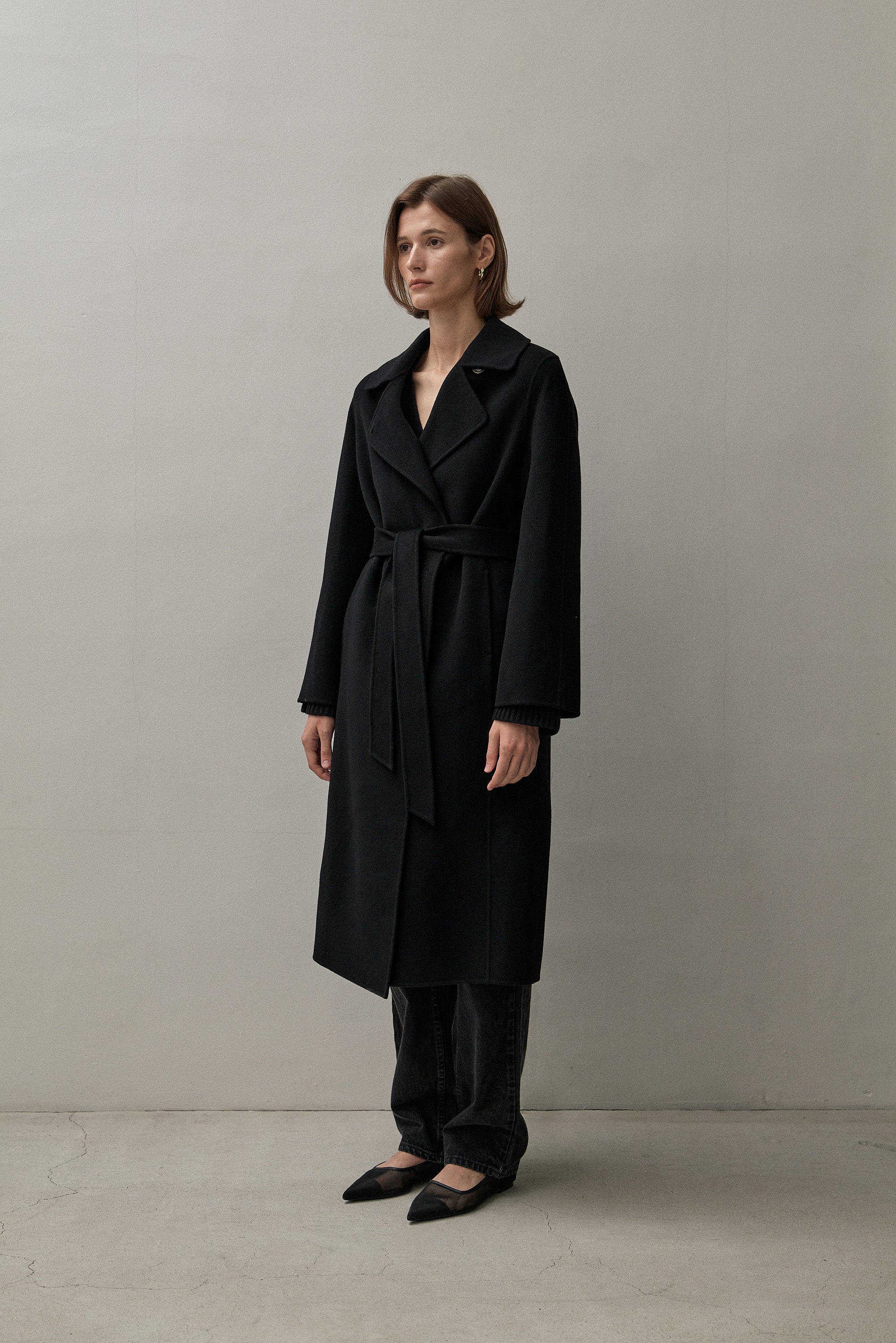Our double faced coats are created with our signature blends of cashmere and superfine merino wool, sourced from Inner Mongolia. This cashmere is celebrated for its softness, warmth, and lightweight properties, making it an ideal choice for luxurious outerwear. Complementing the cashmere, our fine merino wool is known for its incredible softness and excellent thermal regulation, adding durability and resilience to the fabric, ensuring our coats maintain their shape and beauty over time.