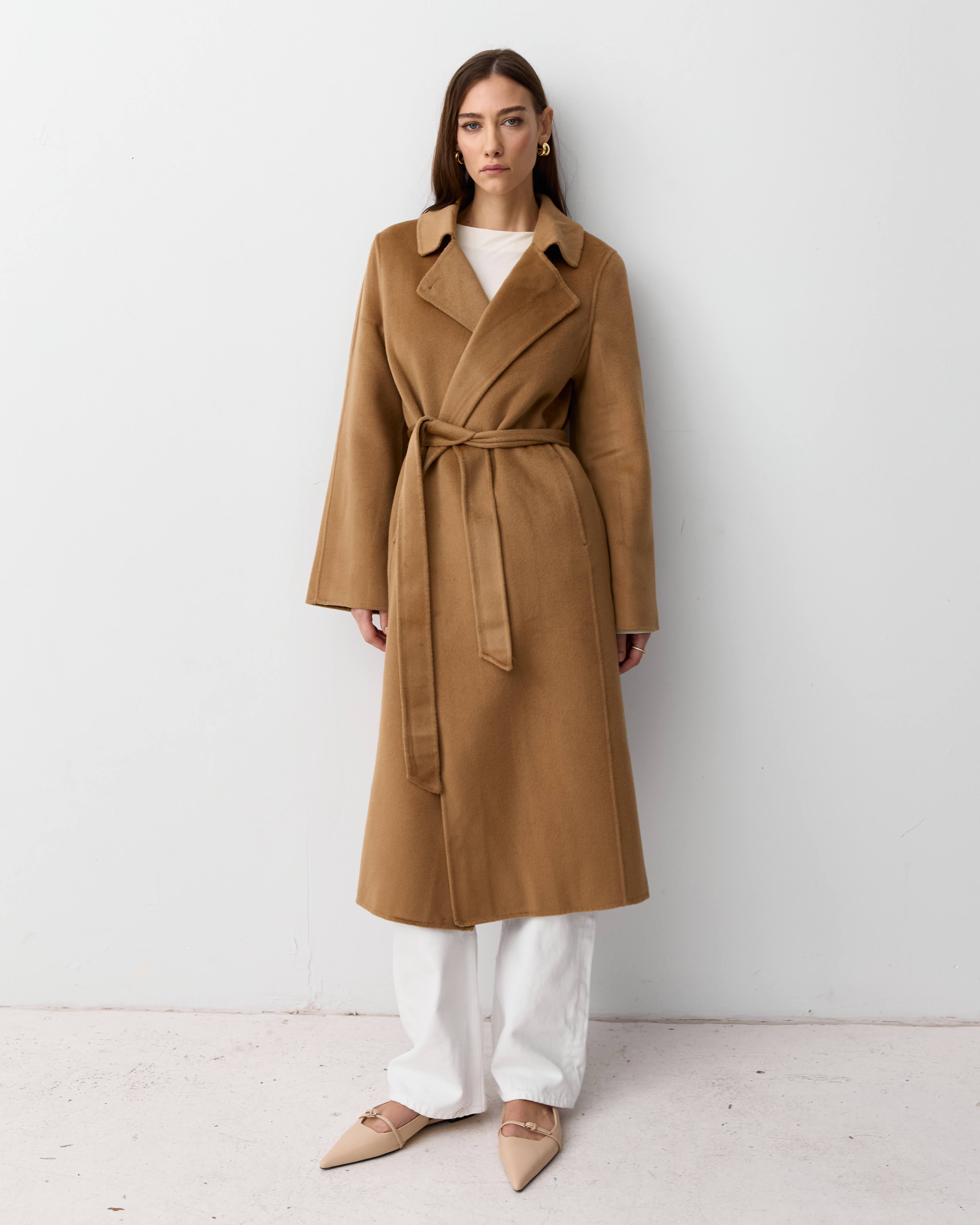 Our double faced coats are created with our signature blends of cashmere and superfine merino wool, sourced from Inner Mongolia. This cashmere is celebrated for its softness, warmth, and lightweight properties, making it an ideal choice for luxurious outerwear. Complementing the cashmere, our fine merino wool is known for its incredible softness and excellent thermal regulation, adding durability and resilience to the fabric, ensuring our coats maintain their shape and beauty over time.