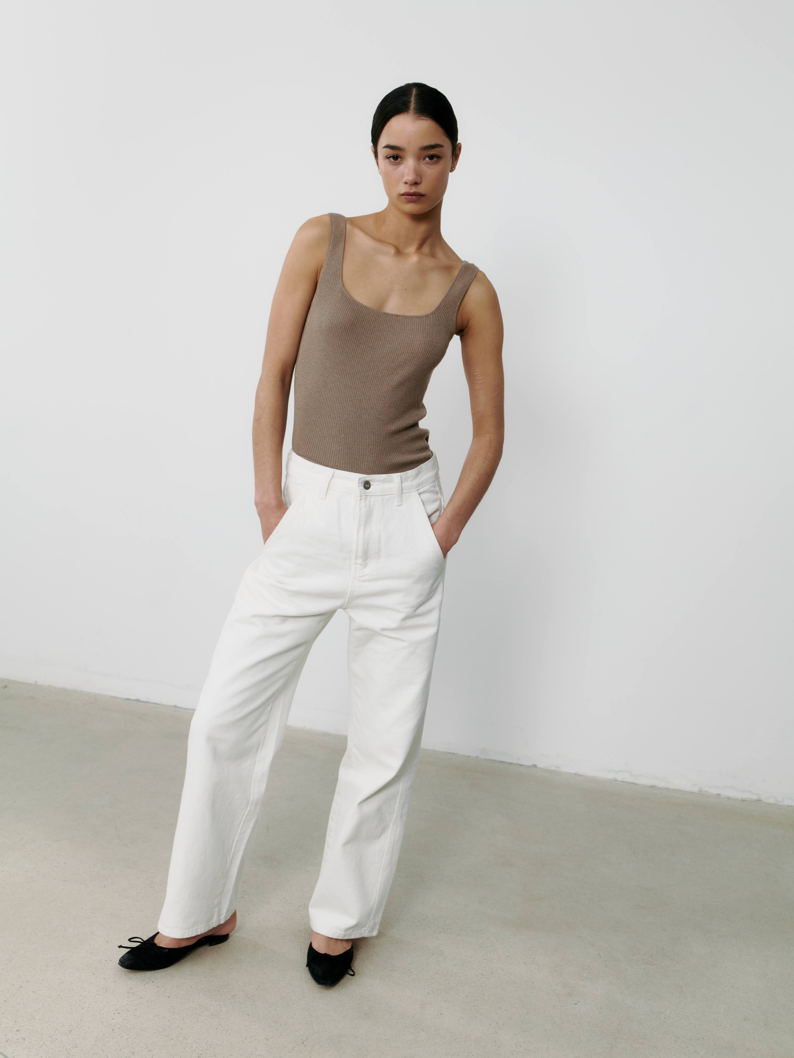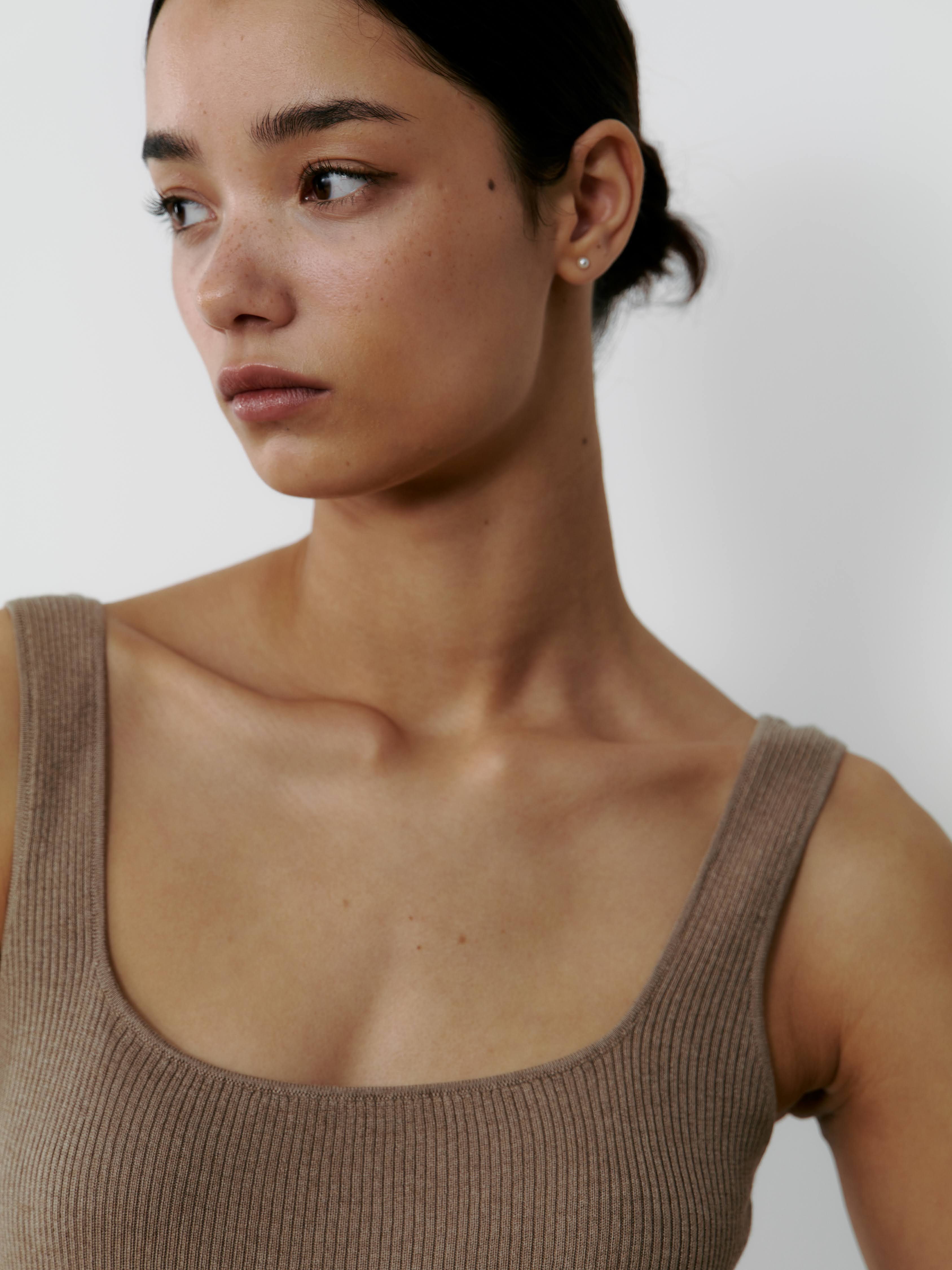 Introducing our newest sleeveless staple, presented in our favourite neutral hues. The gently squared neckline lends an elegant touch, while the ribbed silk and cashmere blend exudes luxury. With a subtle stretch and slim fit, this piece effortlessly elevates any outfit.