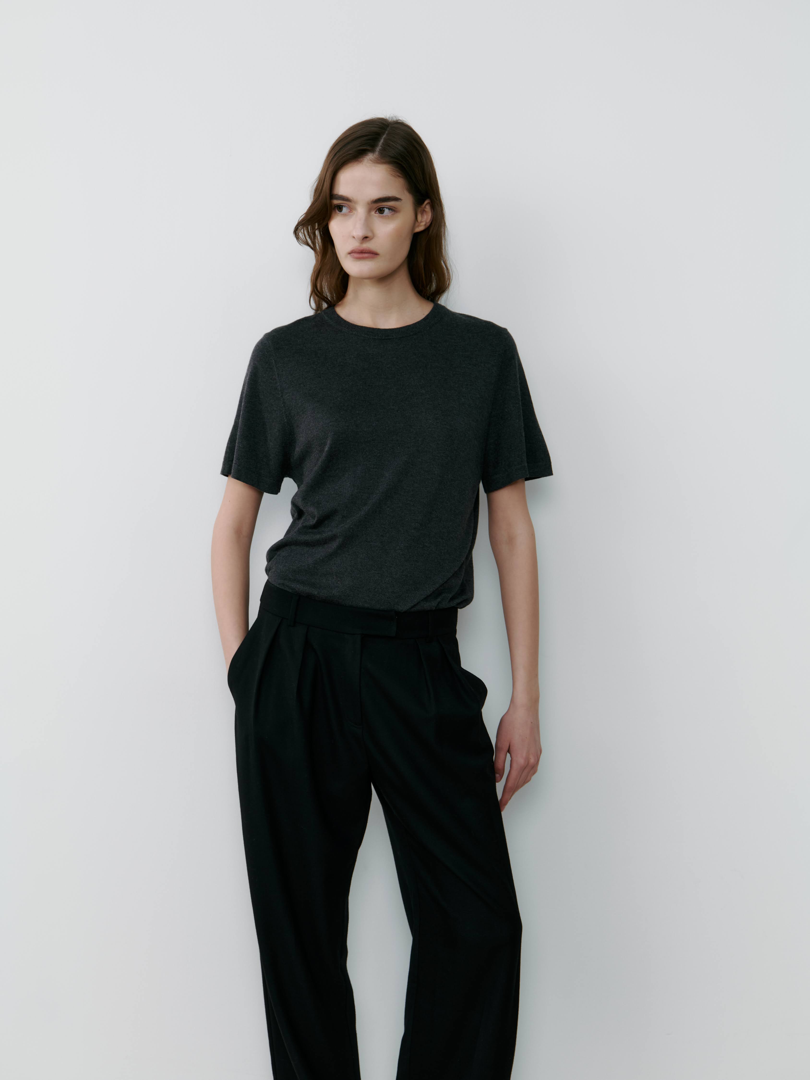 Elevate your essentials drawer with this luxurious silk and cashmere blend knit tee. Designed for a relaxed fit that’s perfect for layering, it has elegant short sleeves and a rounded neckline.