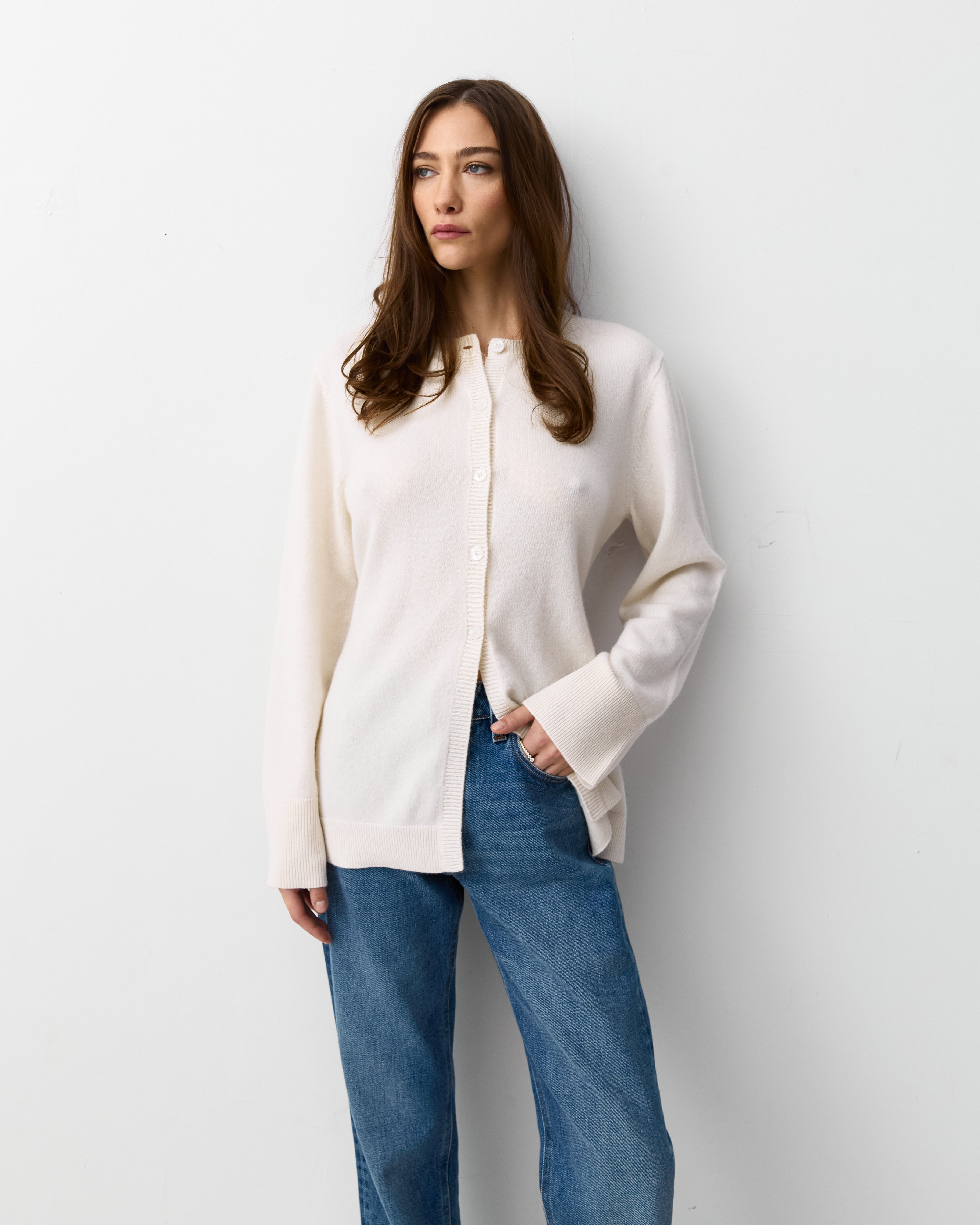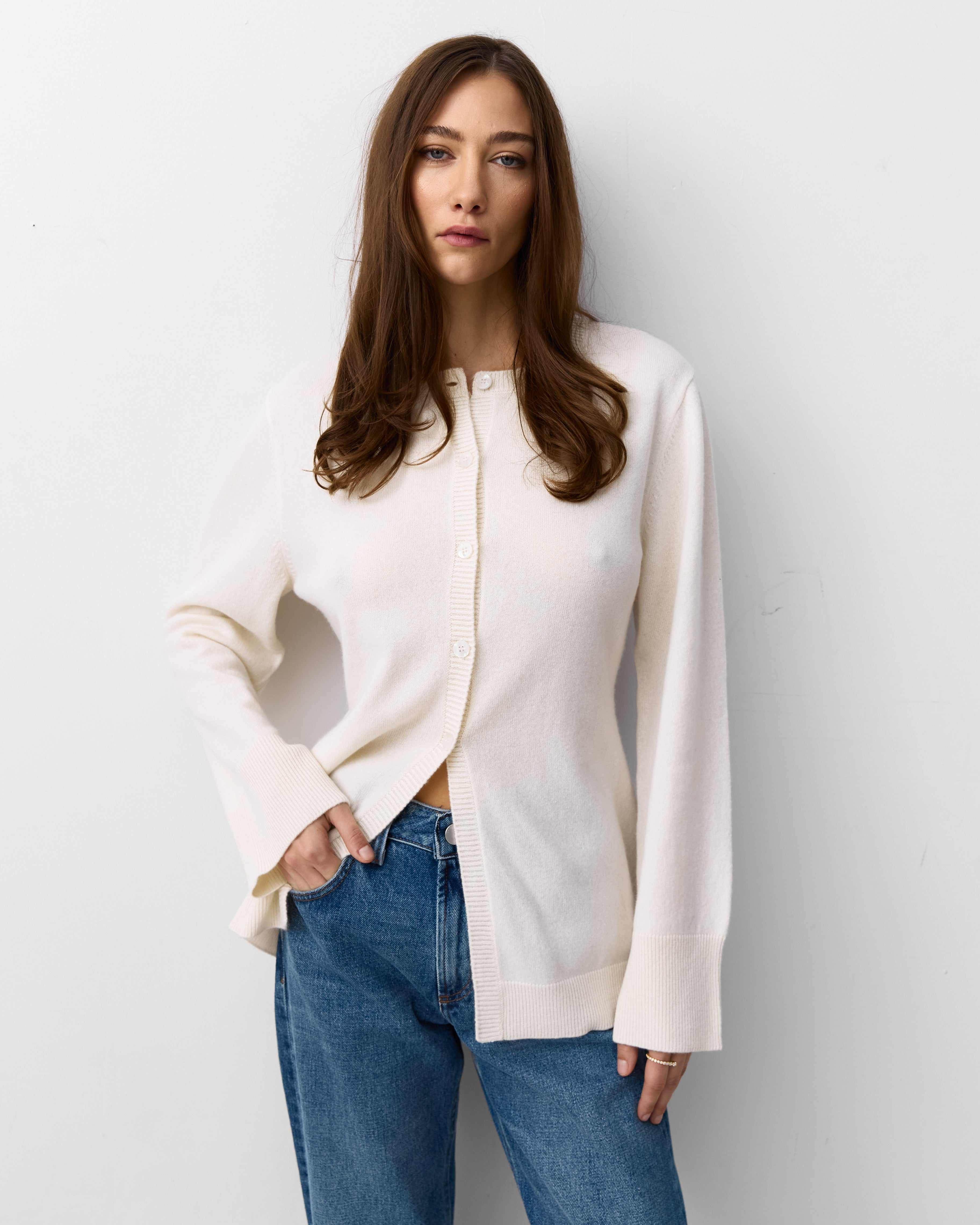 A feminine and tailored cardigan crafted from our signature royal cashmere. Designed to be worn all year round. Curate with our mid rise denim and ballet flats for that every day look.
