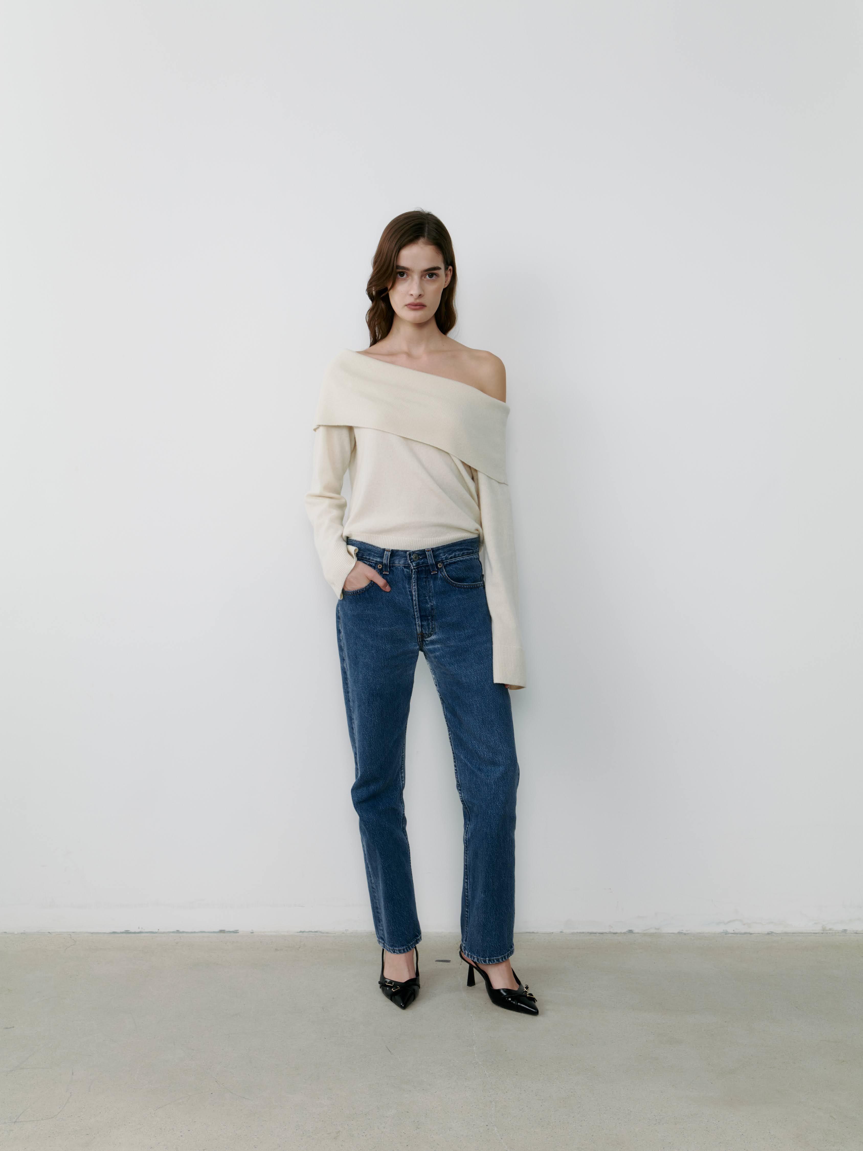 Our favourite off the shoulder top, now in 100% cashmere. A luxurious wardrobe staple to elevate any outfit for day or night. Pair it with your favourite denim or tailored trousers for a sleek and elegant look.