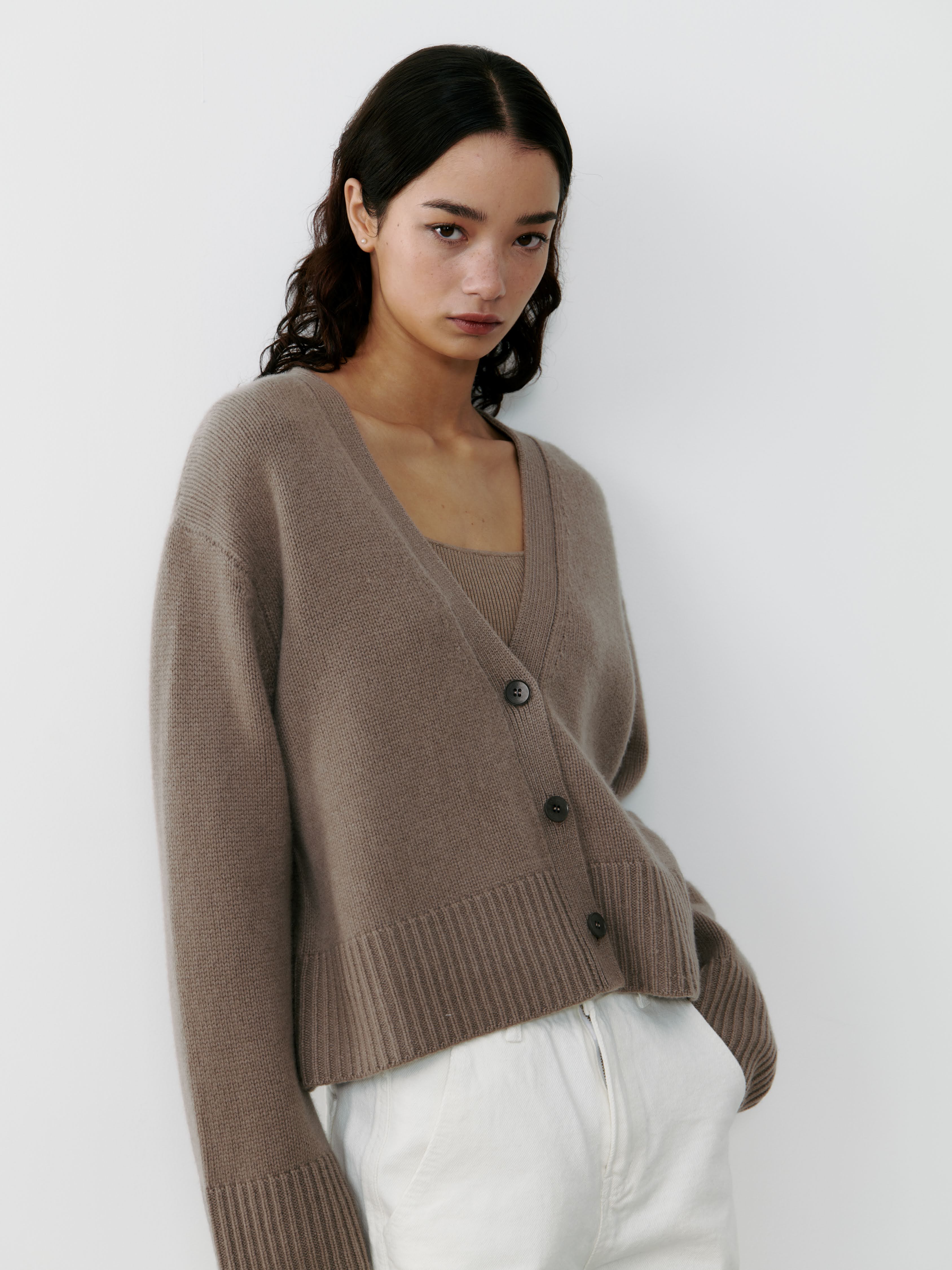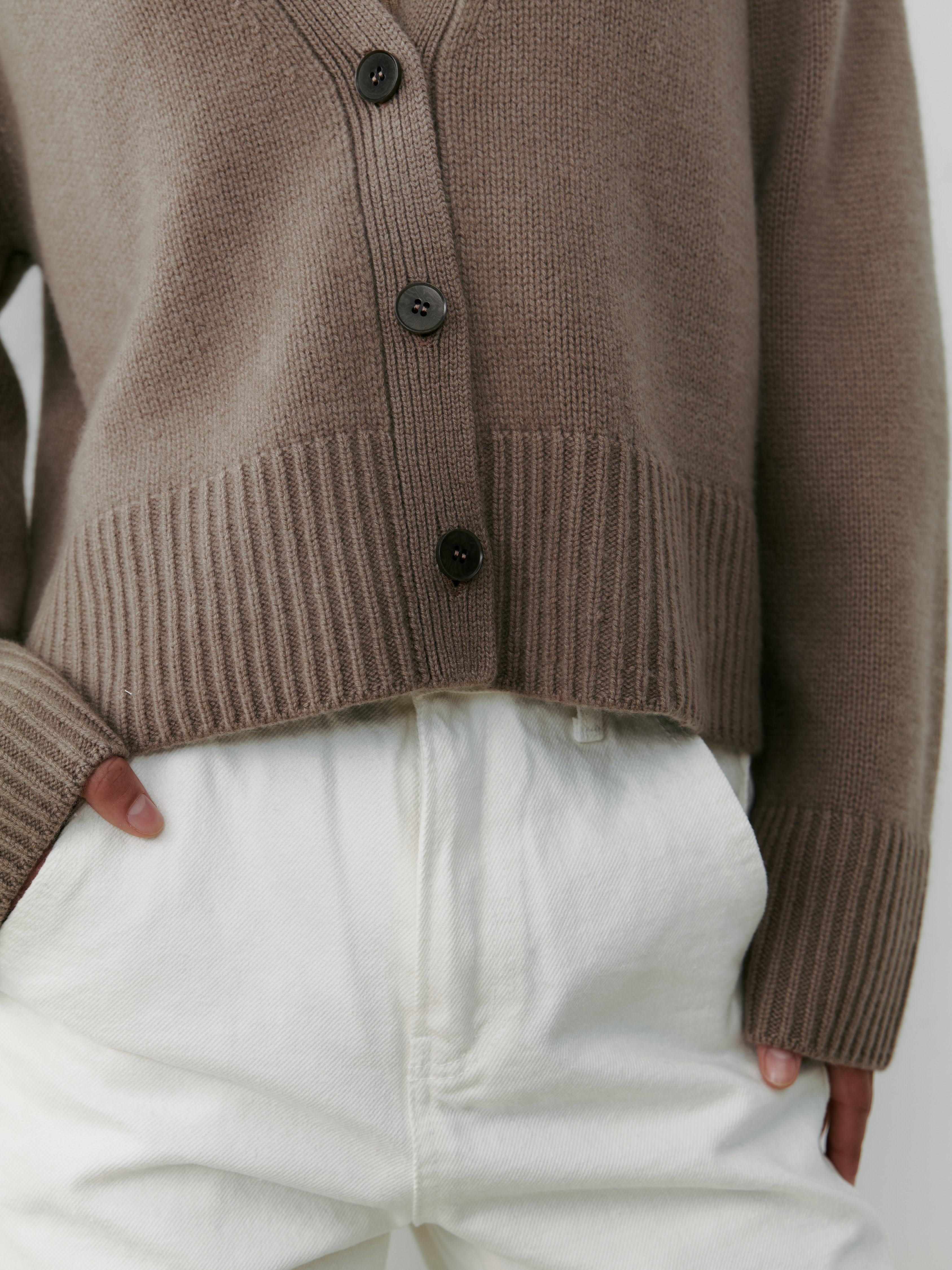 One of our favourite pieces in our cashmere collection, the Classic Cardigan is the perfect transeasonal staple for your wardrobe. With corzo buttons, a 100% Cashmere composition and wider sleeves, this relaxed silhouette makes layering effortless.