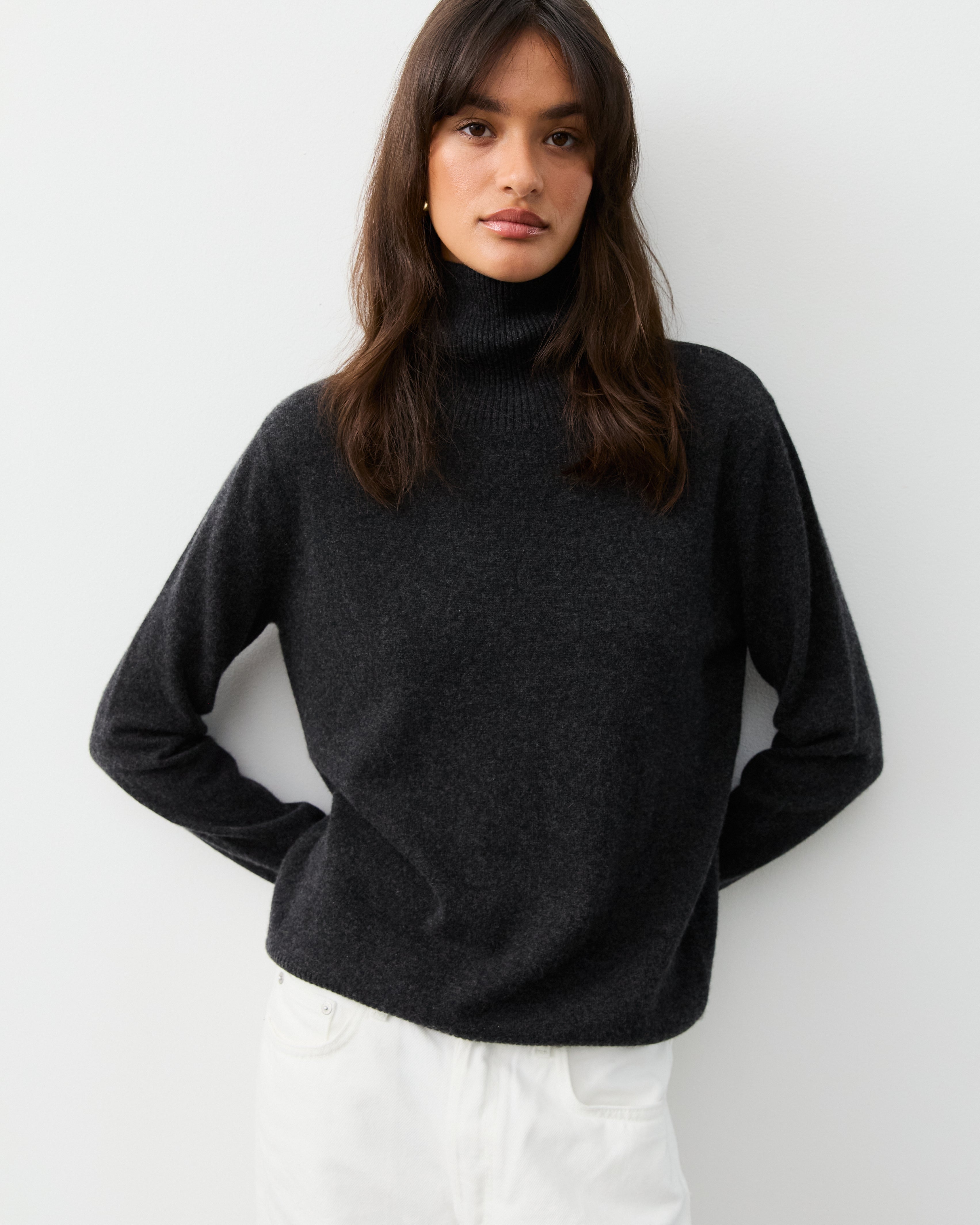 Our new reworked Classic Turtleneck in pure cashmere features a sophisticated high collar and ribbed details. The versatile design makes it easy to dress up or down, making it a great addition to any wardrobe. Choose from our range of classic colours.