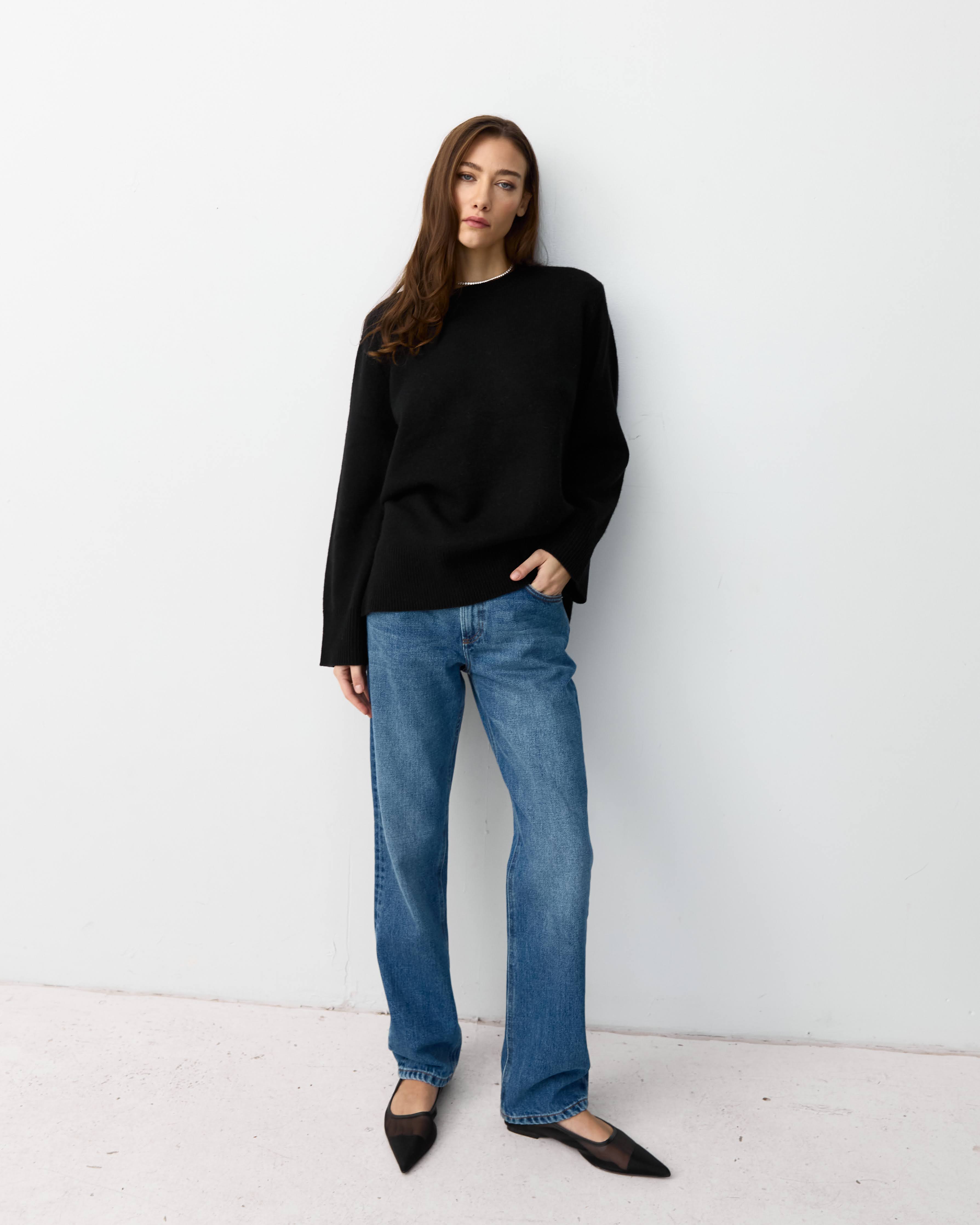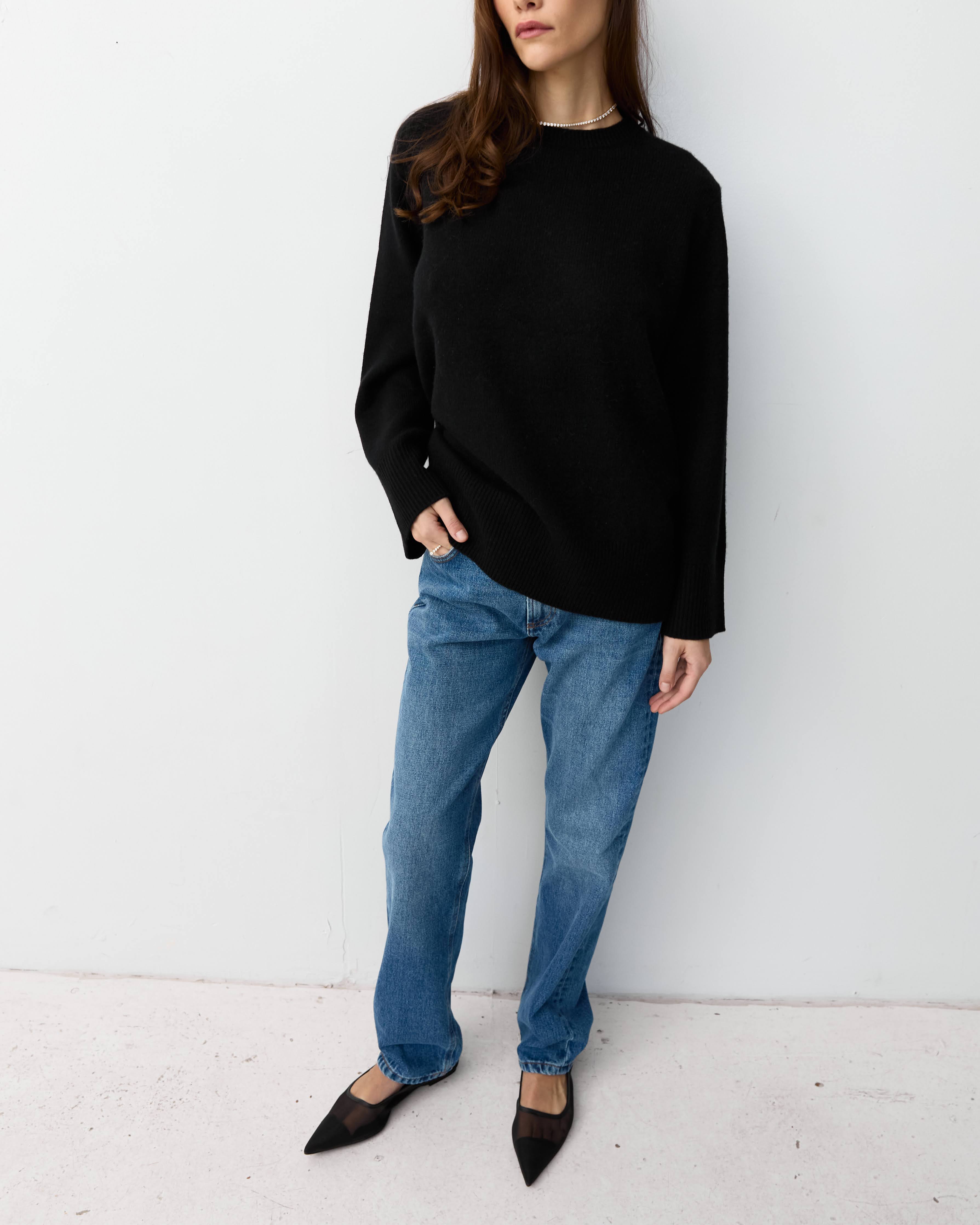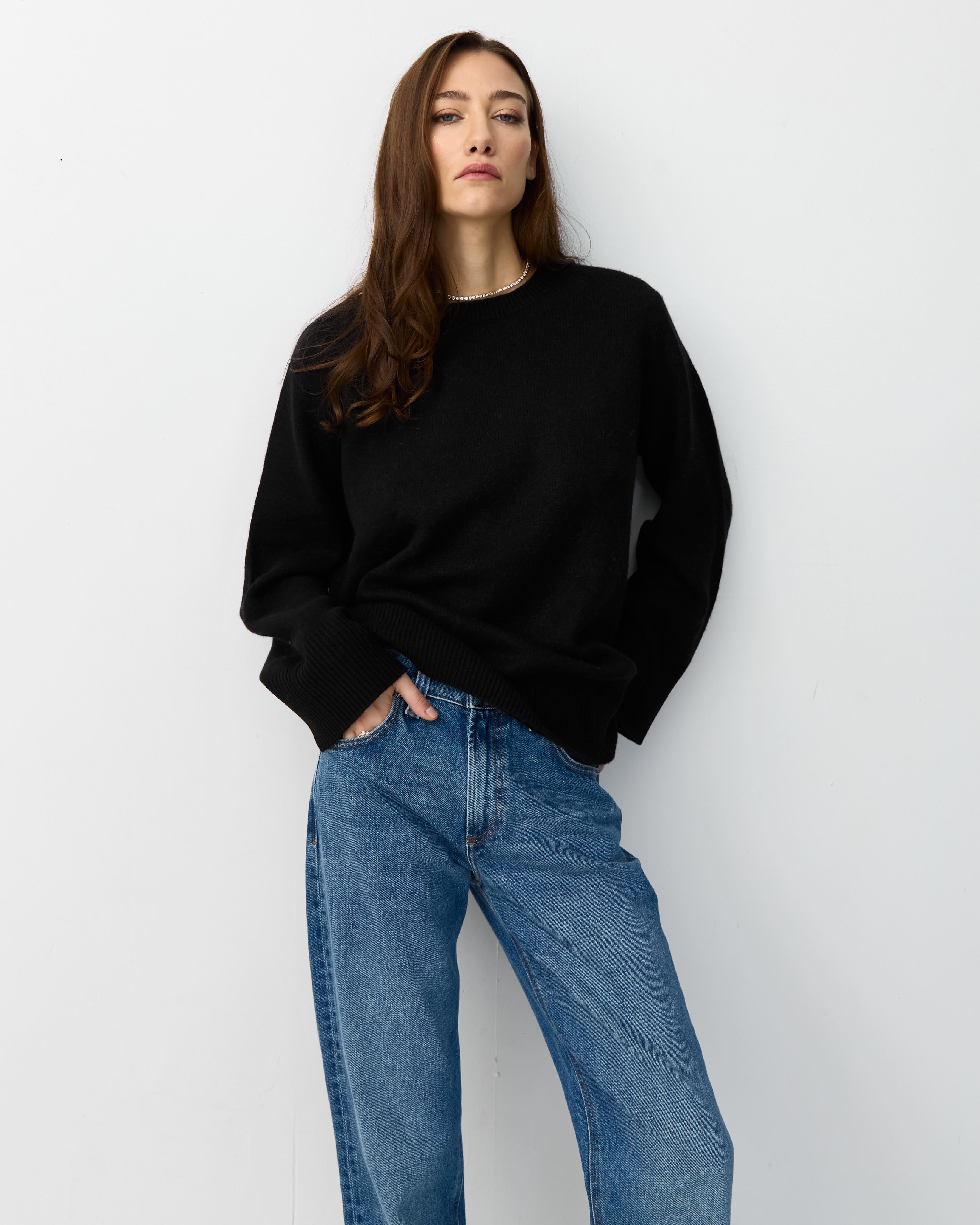 There is nothing more essential than a classic cashmere crew knit. Designed with a relaxed fit, bell sleeves and made with our signature royal cashmere this is a beautiful piece you can wear layered over denim or tucked into a silk skirt.
