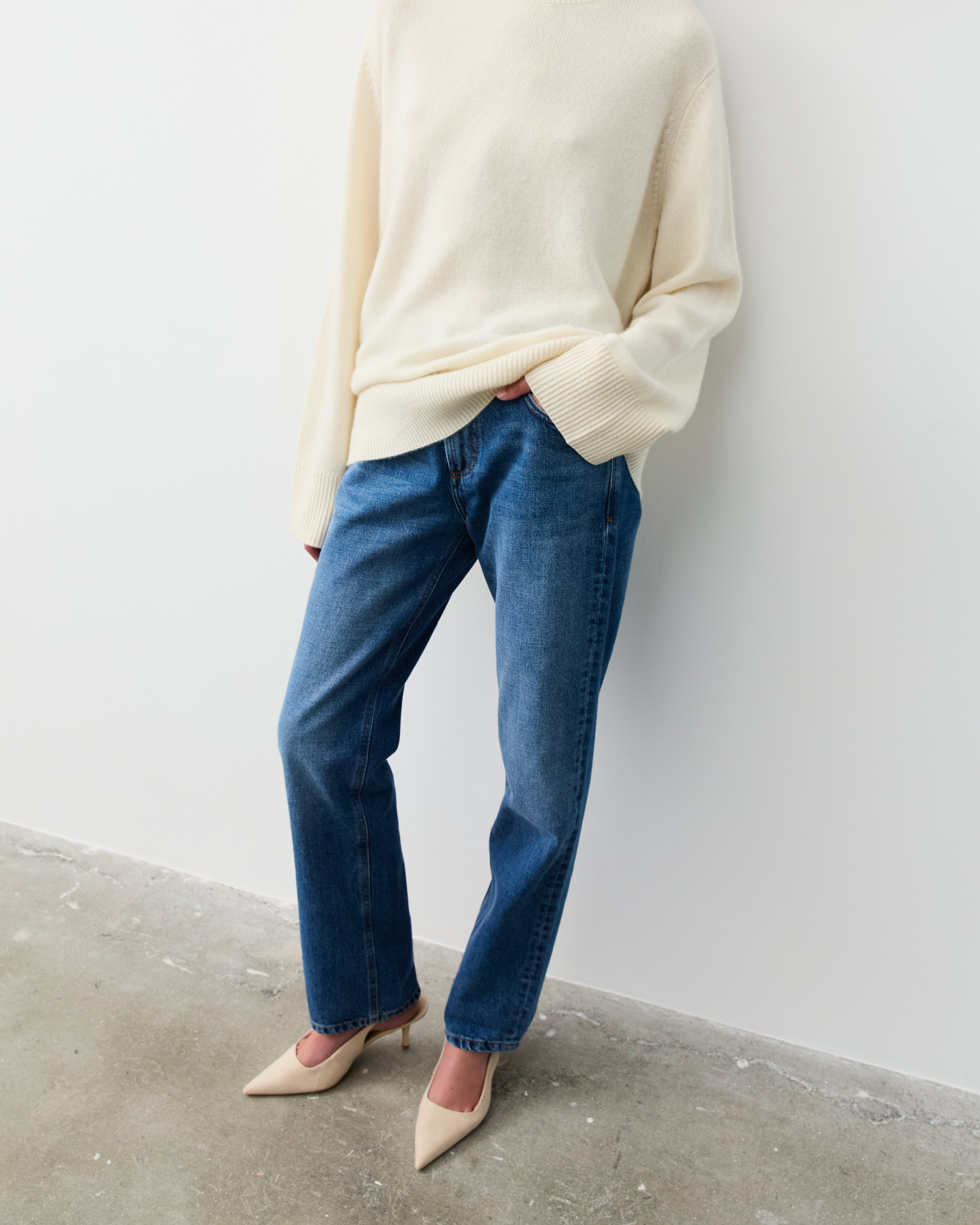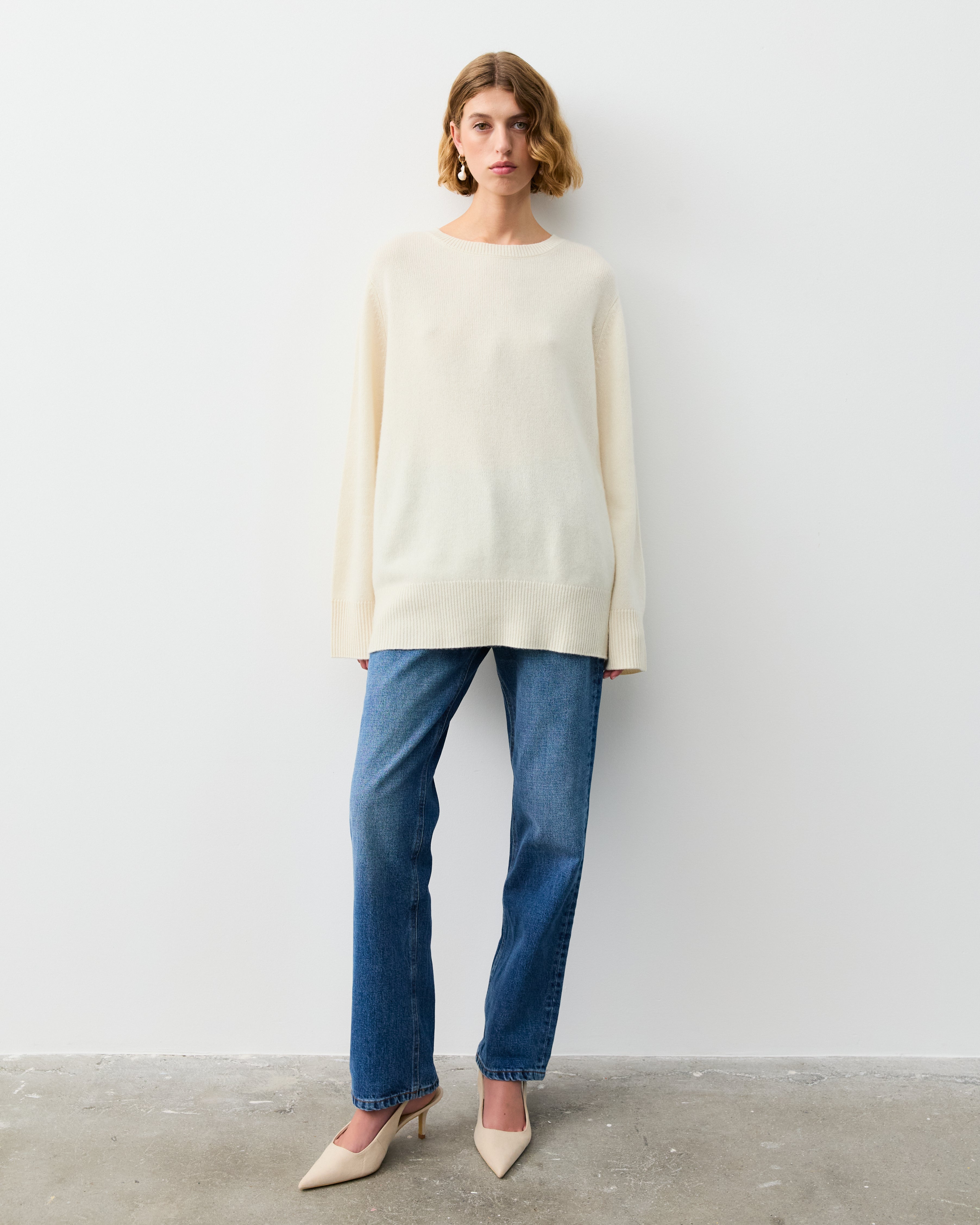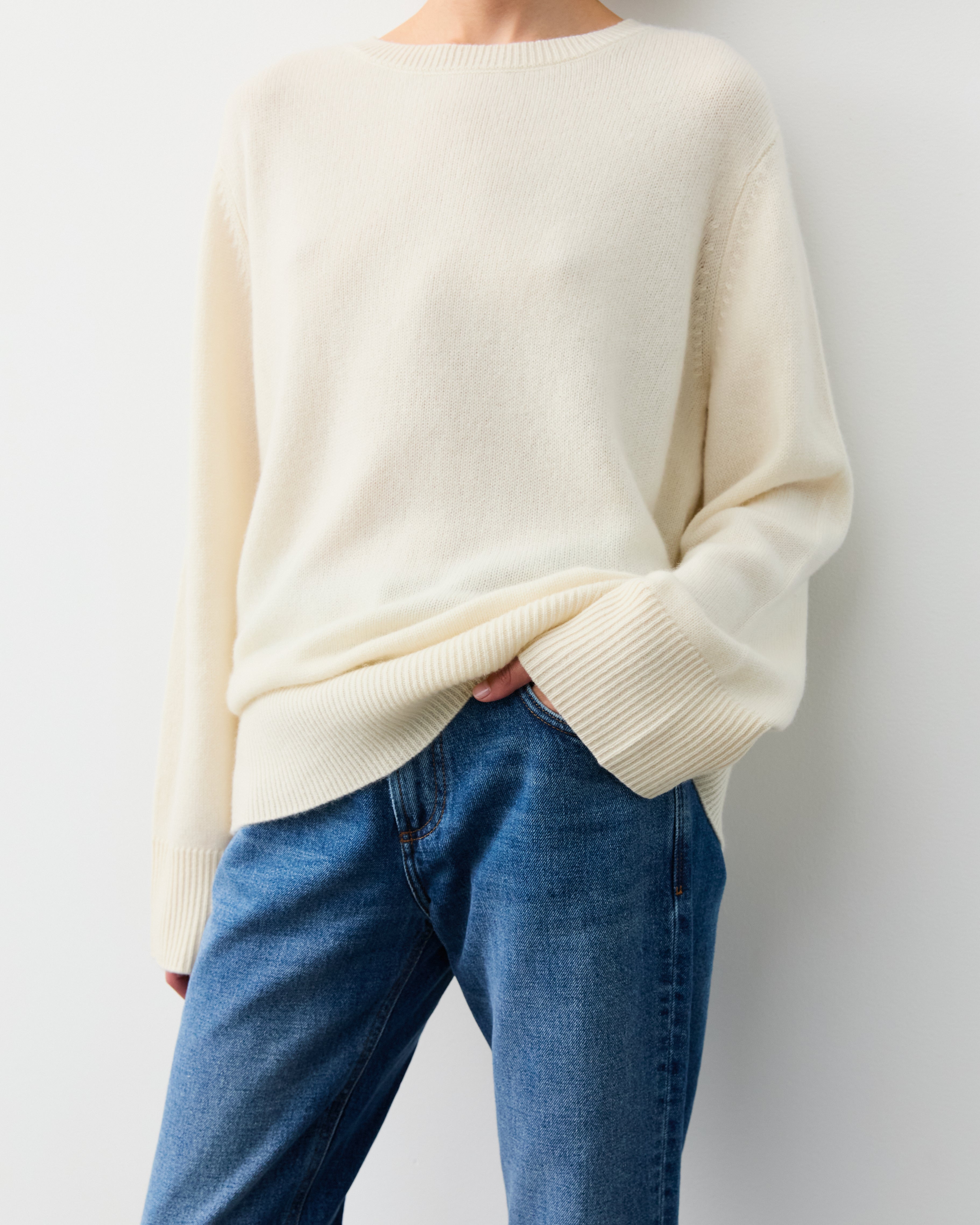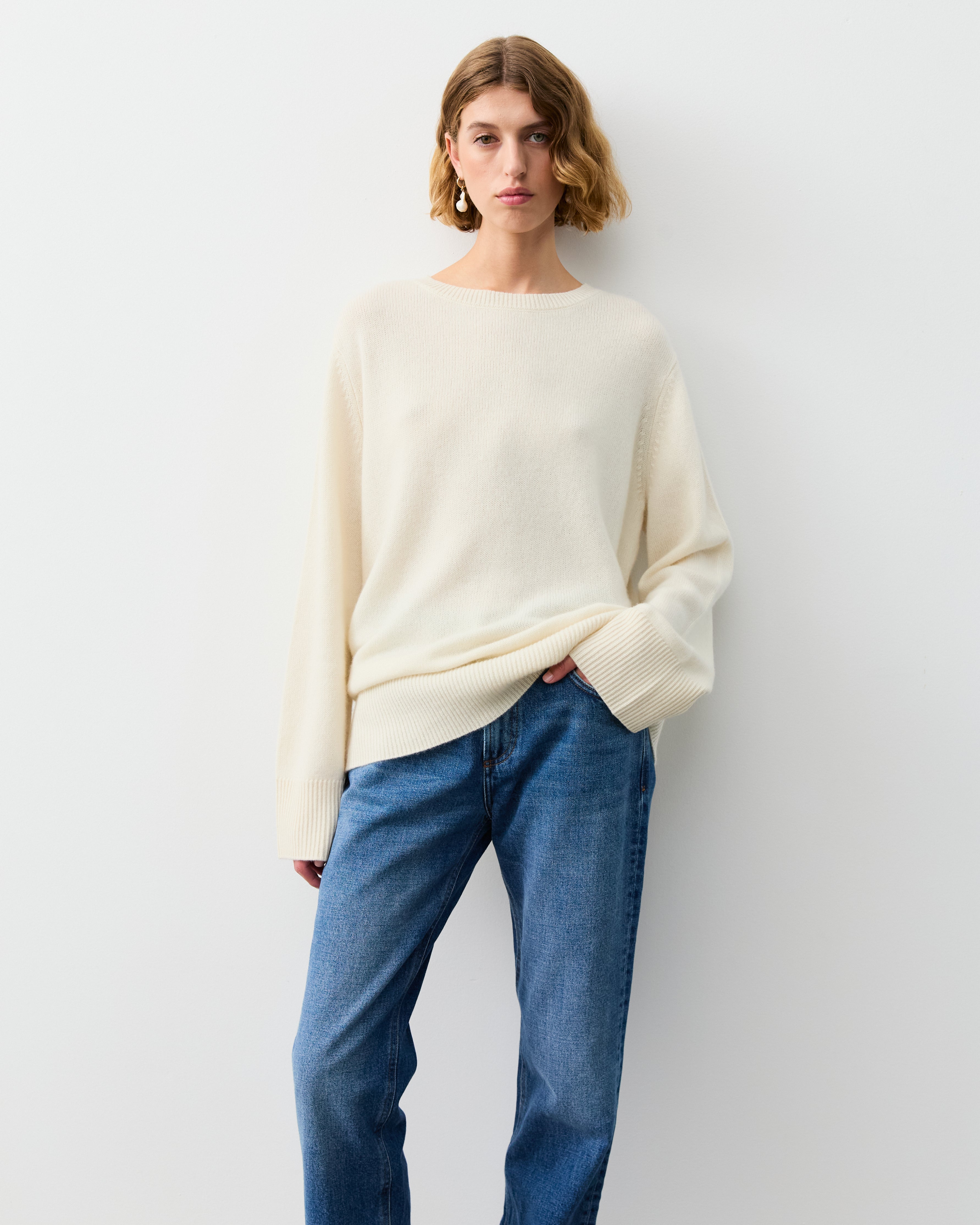 There is nothing more essential than a classic cashmere crew knit. Designed with a relaxed fit, bell sleeves and made with our signature royal cashmere this is a beautiful piece you can wear layered over denim or tucked into a silk skirt.