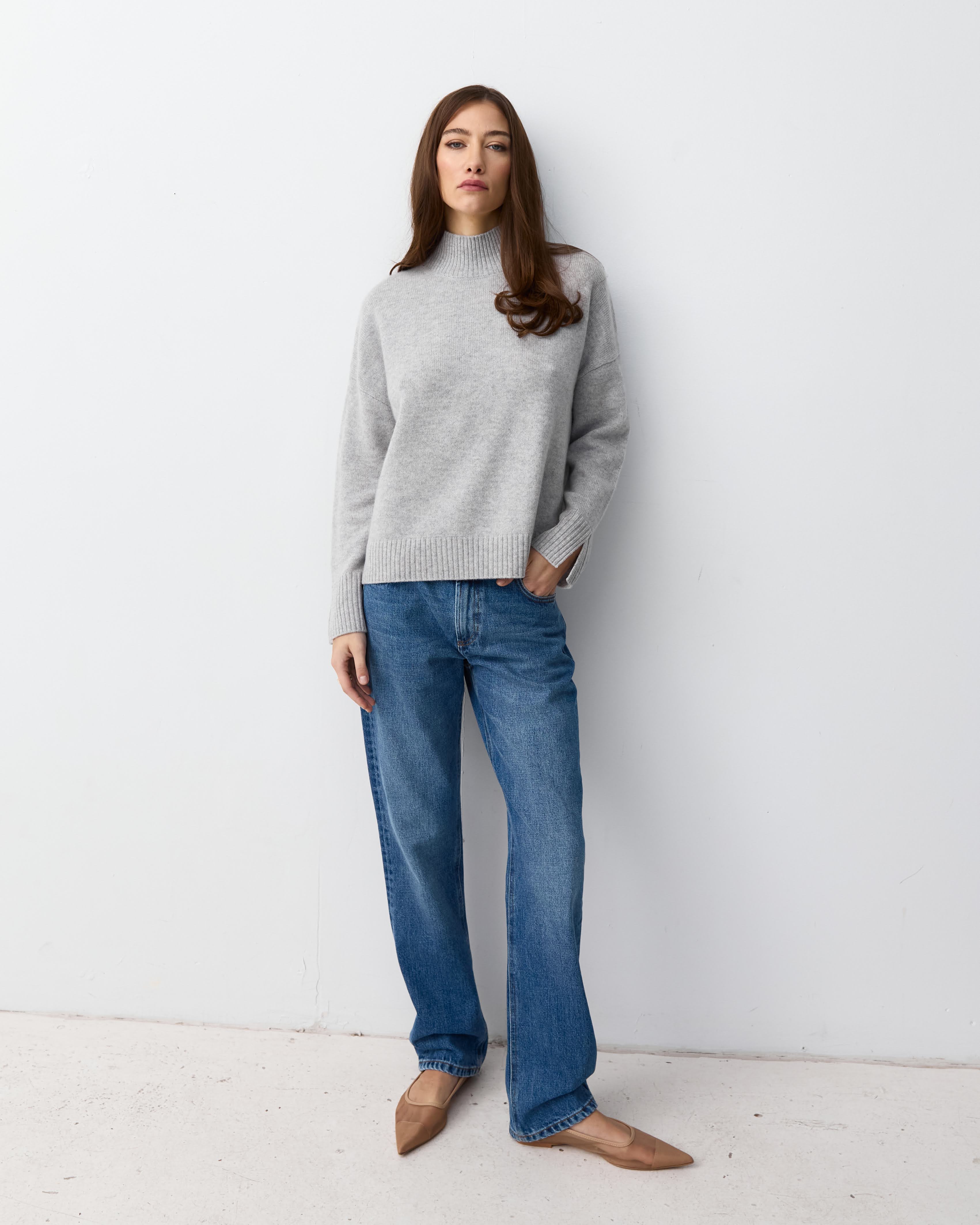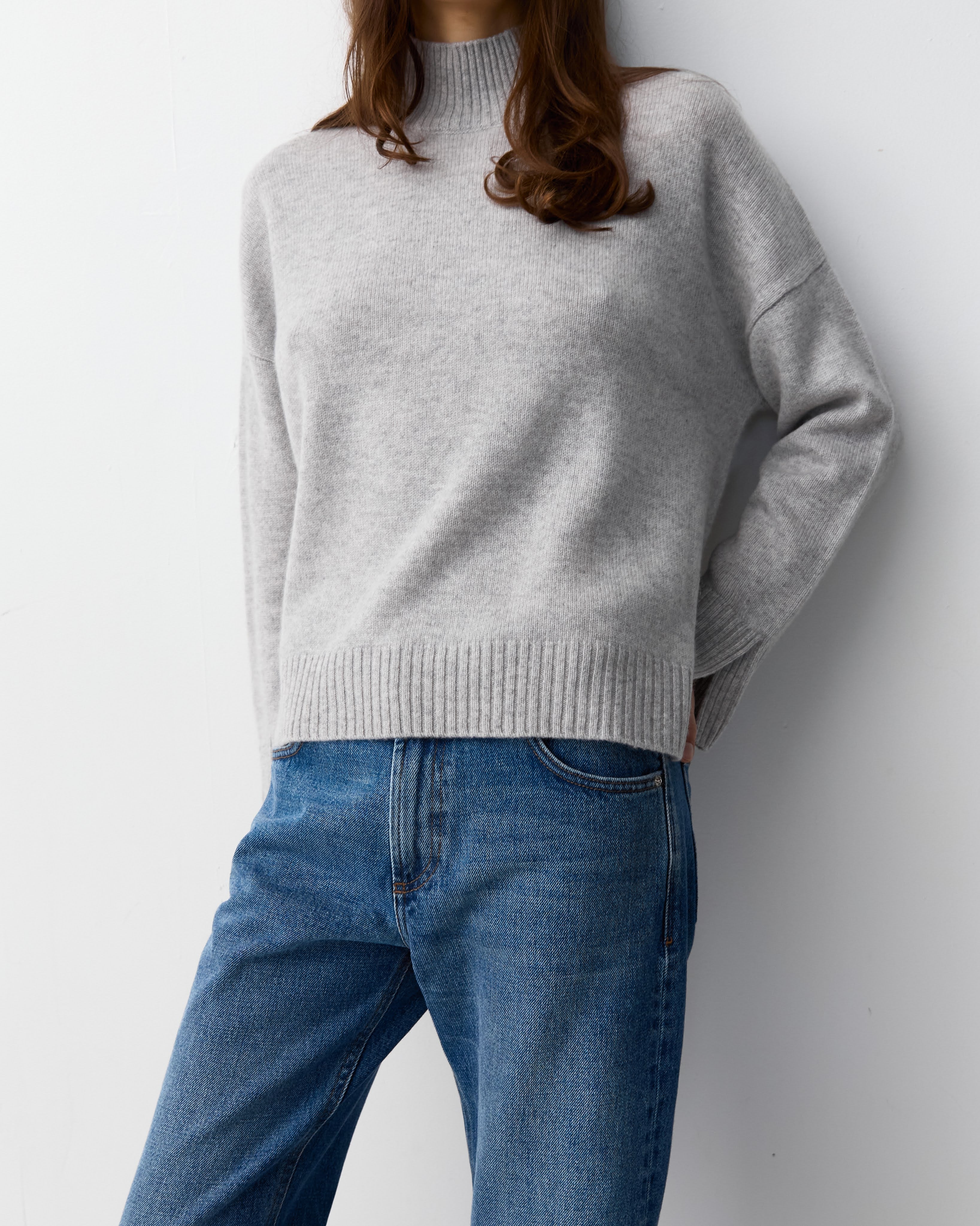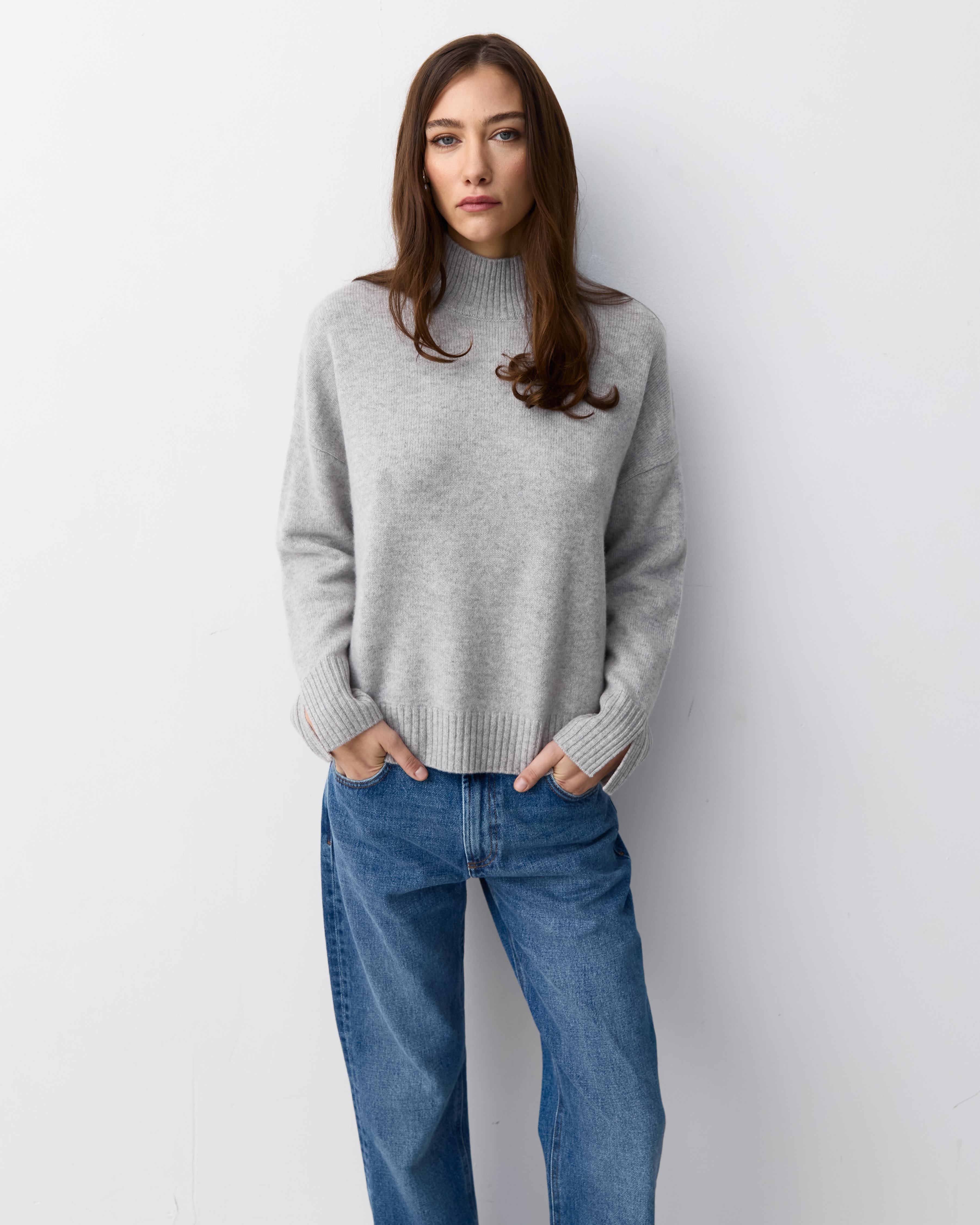 With a relaxed silhouette and split sleeves, The Mock Neck sweater is the most versatile piece to take you from casual to chic. This comfortable knit will be your ultimate staple this season.