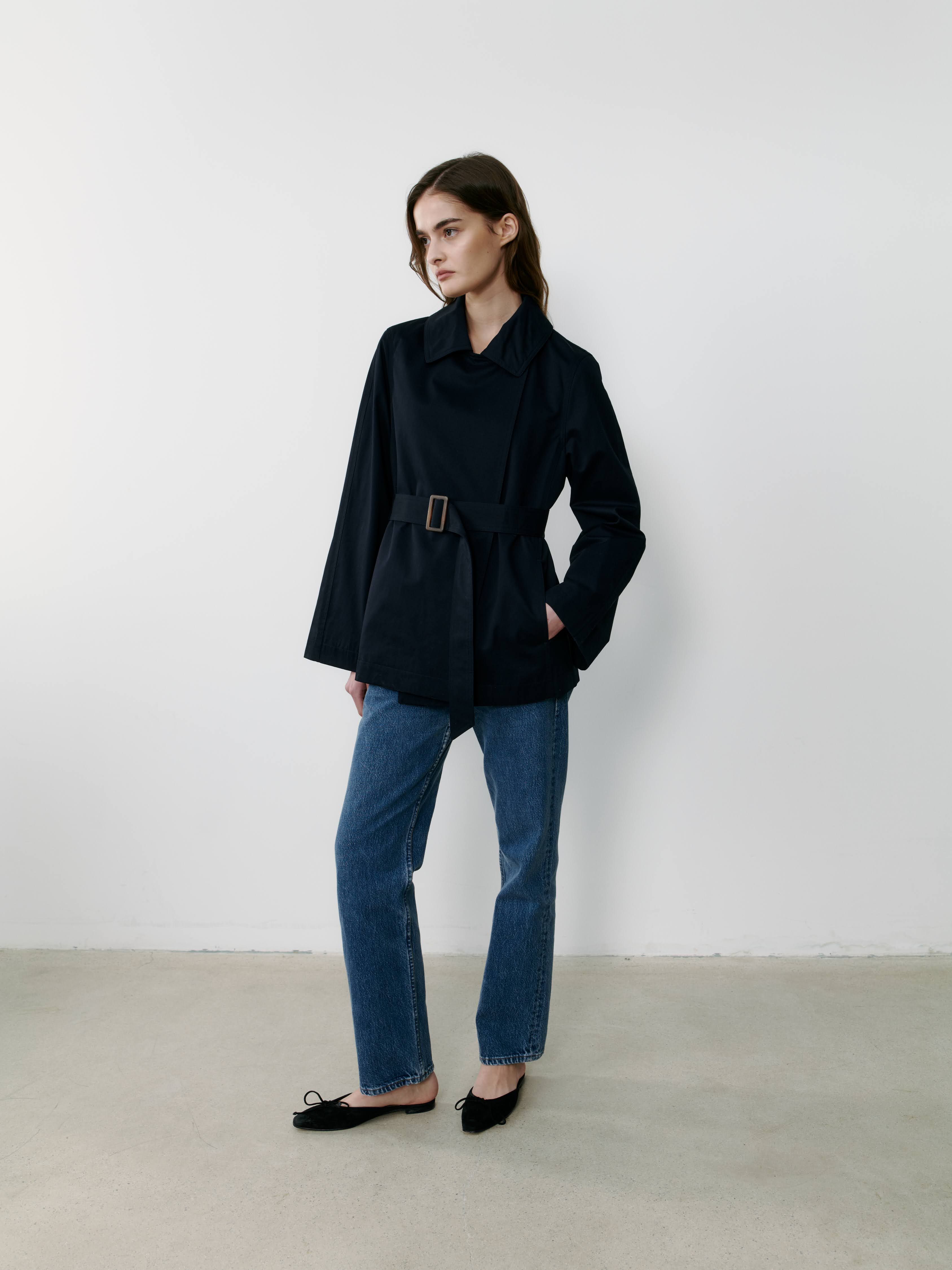 Discover our tailored trench jacket, a perfect blend of elegance and practicality to keep you warm and dry.