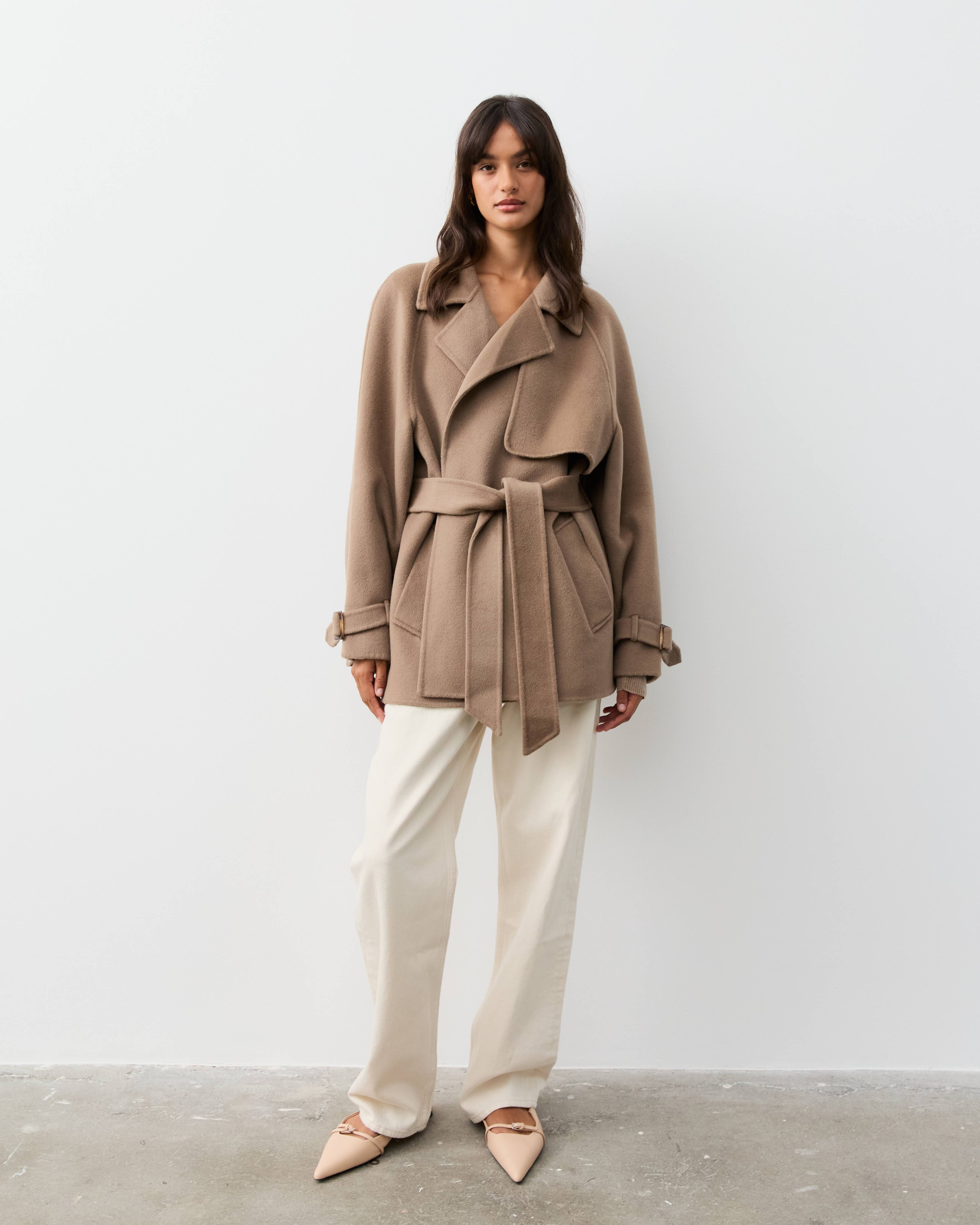 THE DOUBLE FACED TRENCH JACKET -TAUPE