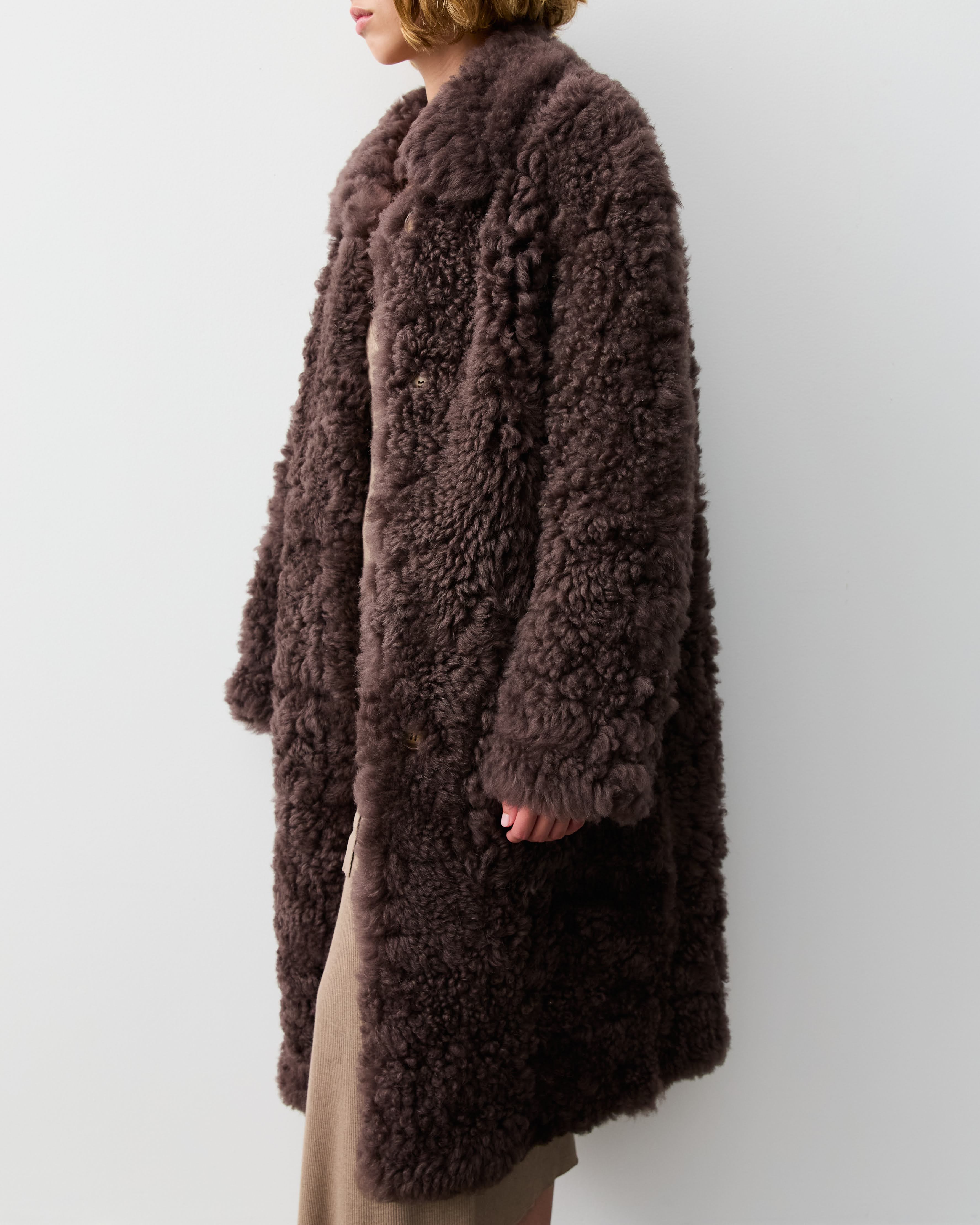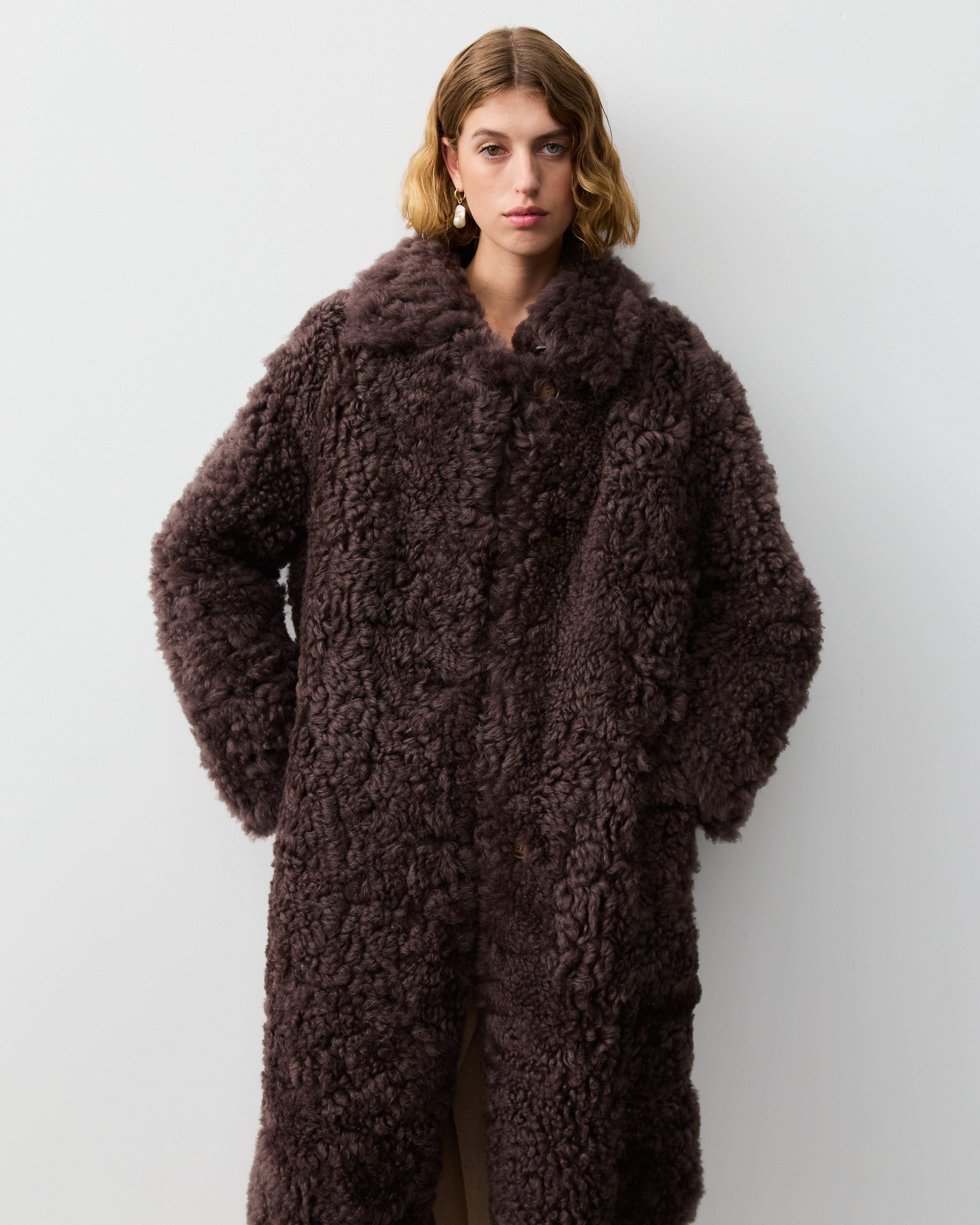 Our Long Shearling Coat exudes winter indulgence. A statement silhouette crafted generously from heavyweight merino shearling for dramatic texture & a supple leather reverse. Envelope the silhouette over a tailored ensemble to instill refined winter appeal.