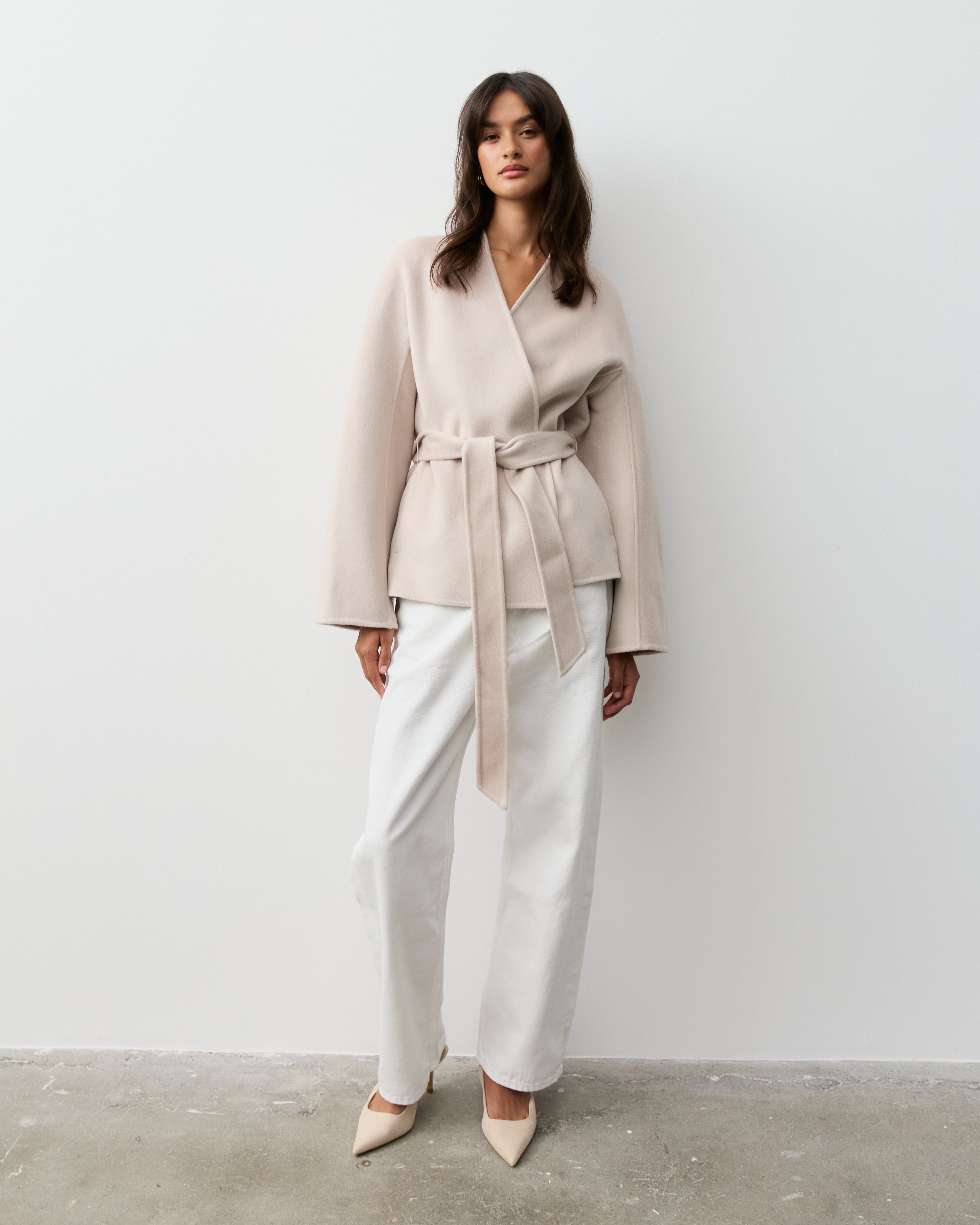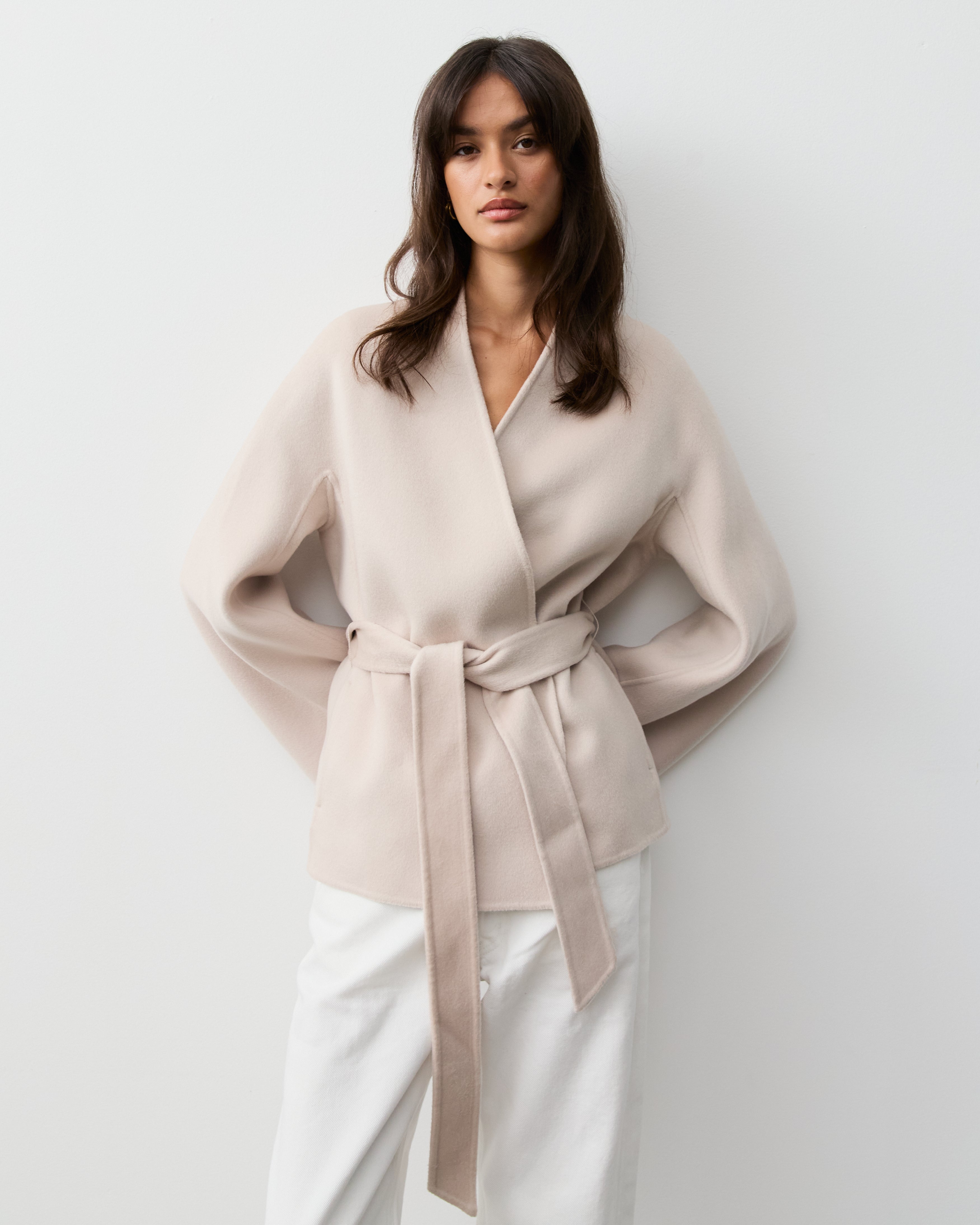 Our double faced coats are created with our signature blends of cashmere and superfine merino wool, sourced from Inner Mongolia. This cashmere is celebrated for its softness, warmth, and lightweight properties, making it an ideal choice for luxurious outerwear. Complementing the cashmere, our fine merino wool is known for its incredible softness and excellent thermal regulation, adding durability and resilience to the fabric, ensuring our coats maintain their shape and beauty over time.