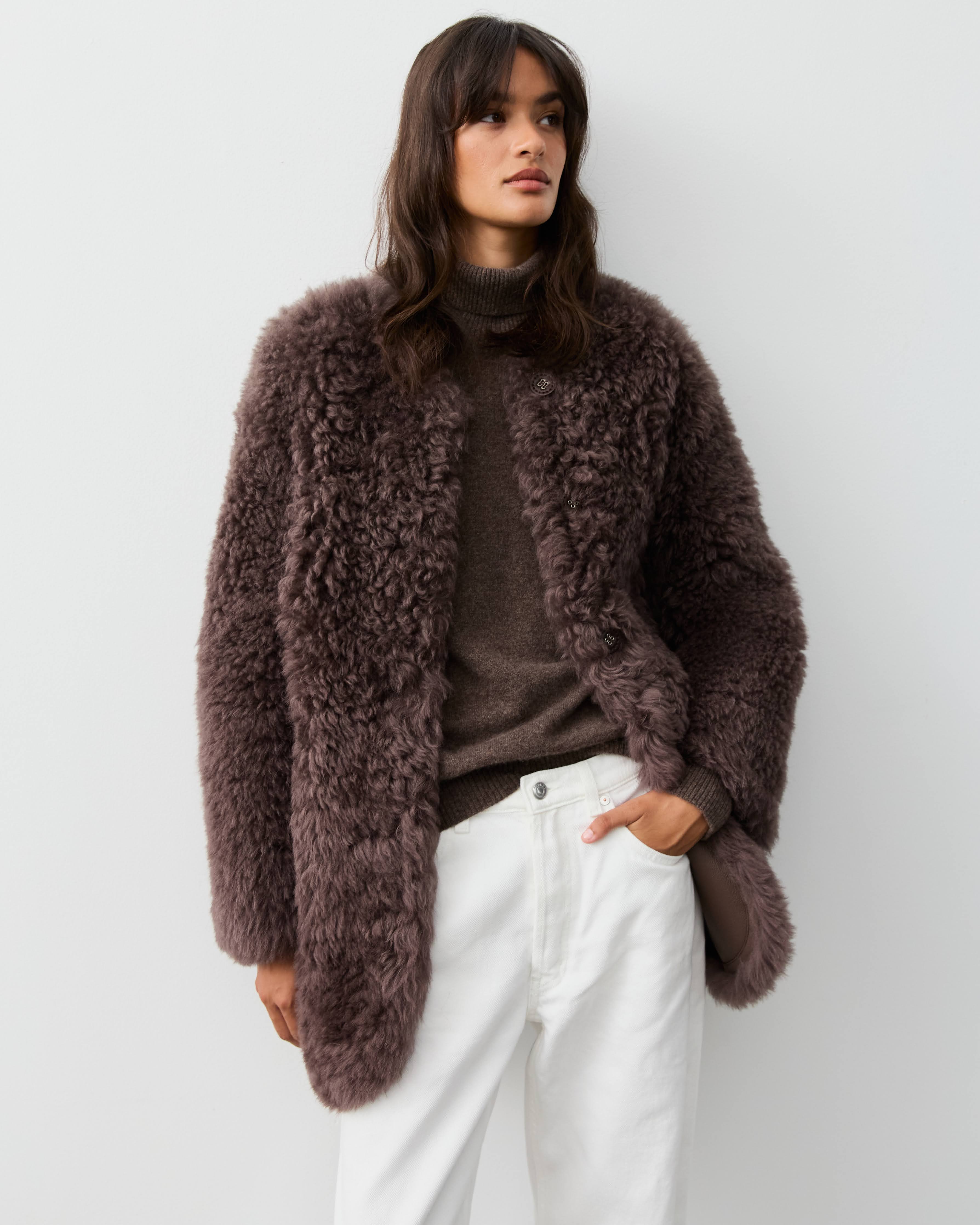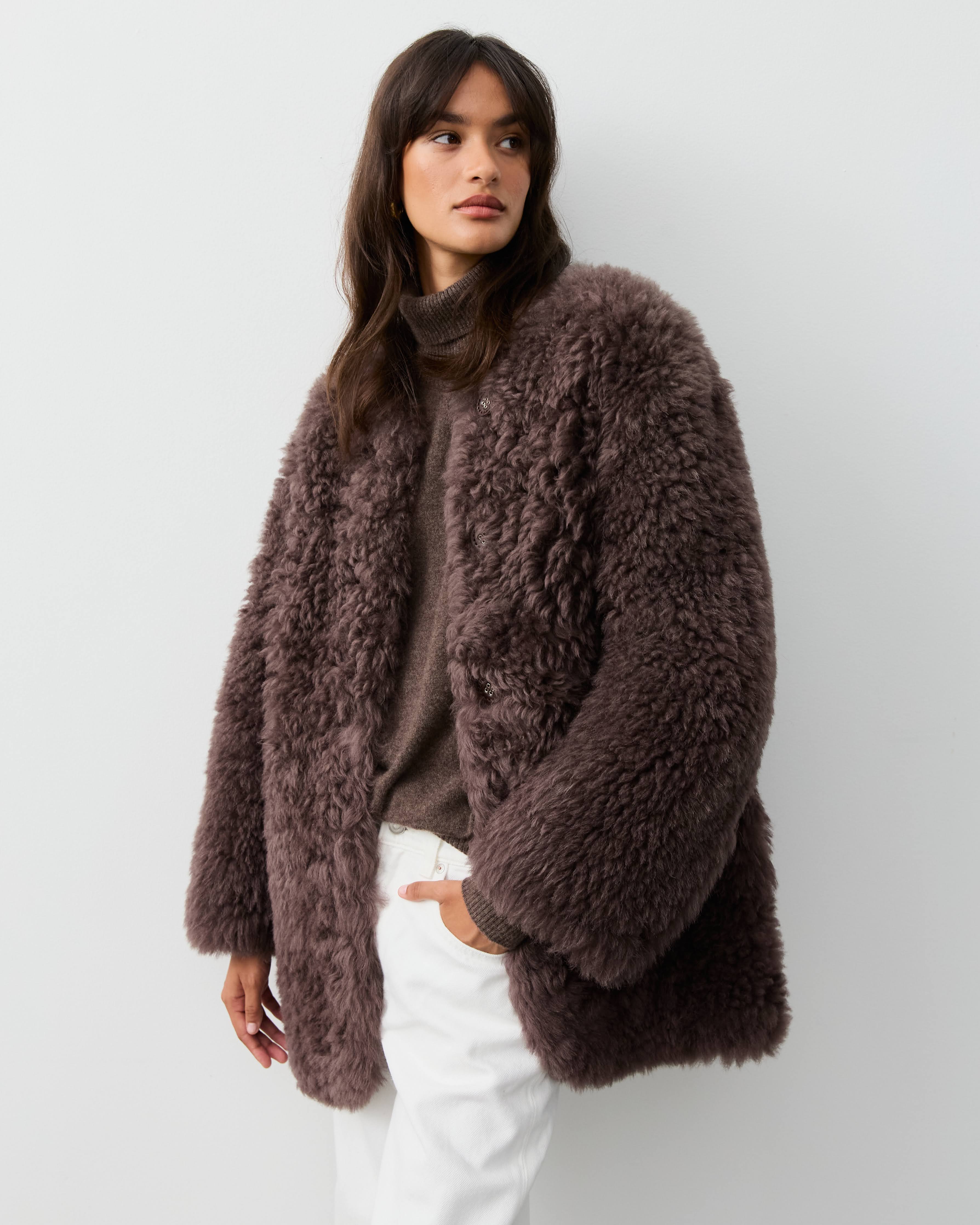 THE SHORT SHEARLING JACKET - CHOCOLATE